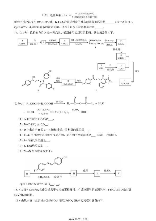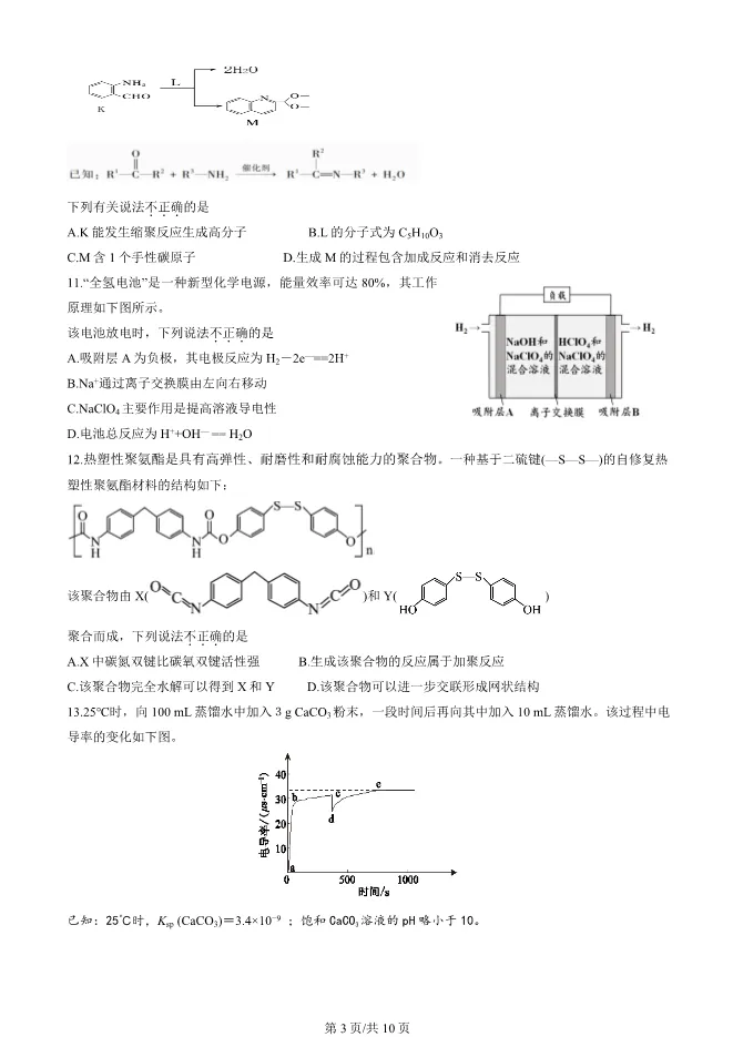 2025北京顺义高三一模化学试卷(有答案) ;word版本可下载使用;
