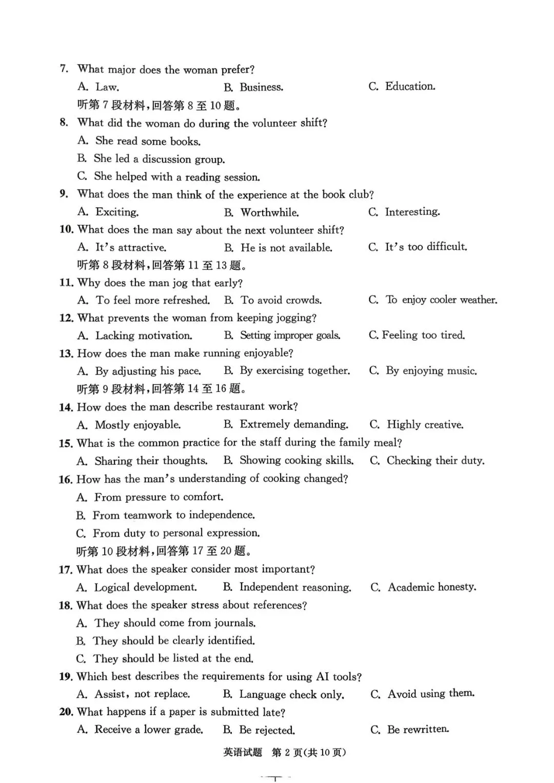 小编整理好了各科试卷及答案