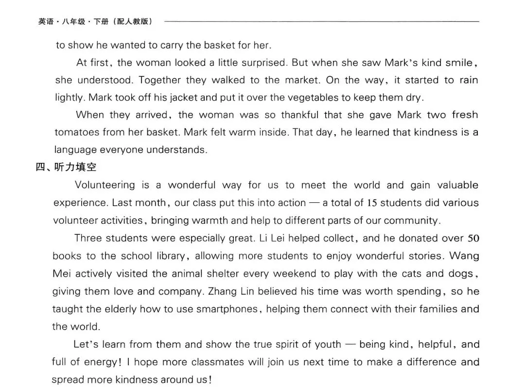 >【新人教】八下导学Unit 8听力+试卷+听力材料
