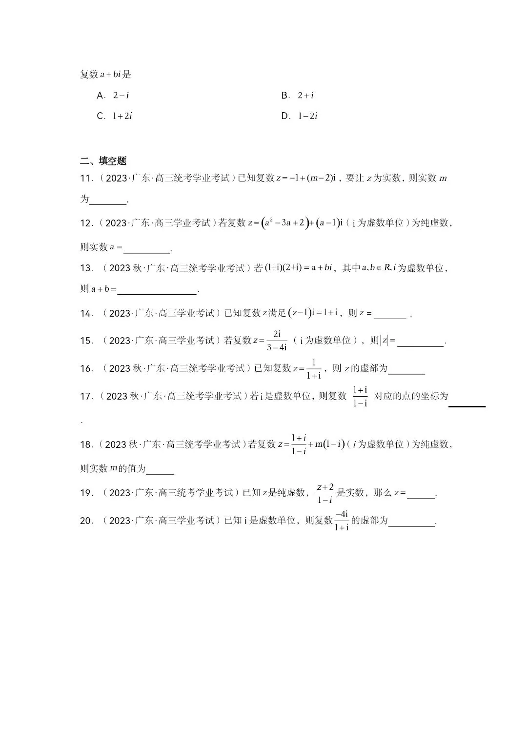 高中数学学业水平真题答案—专题03复数