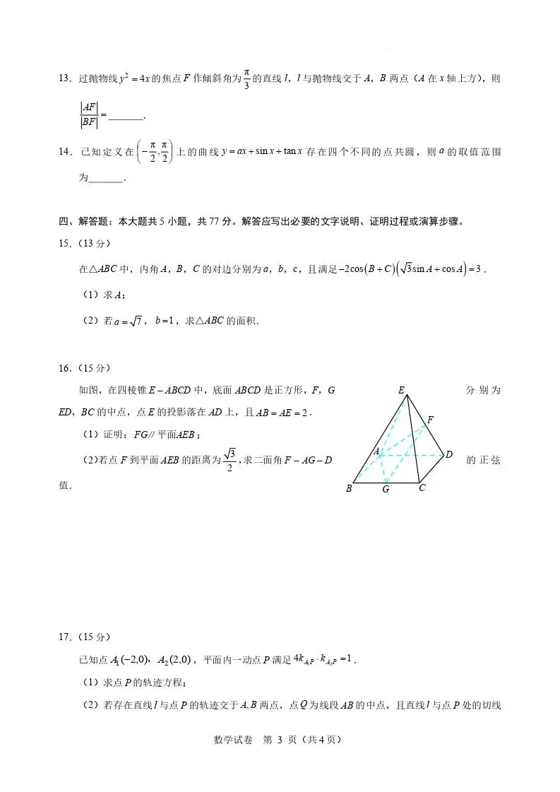 2026年3月点石联考高三学情调研试卷+答案