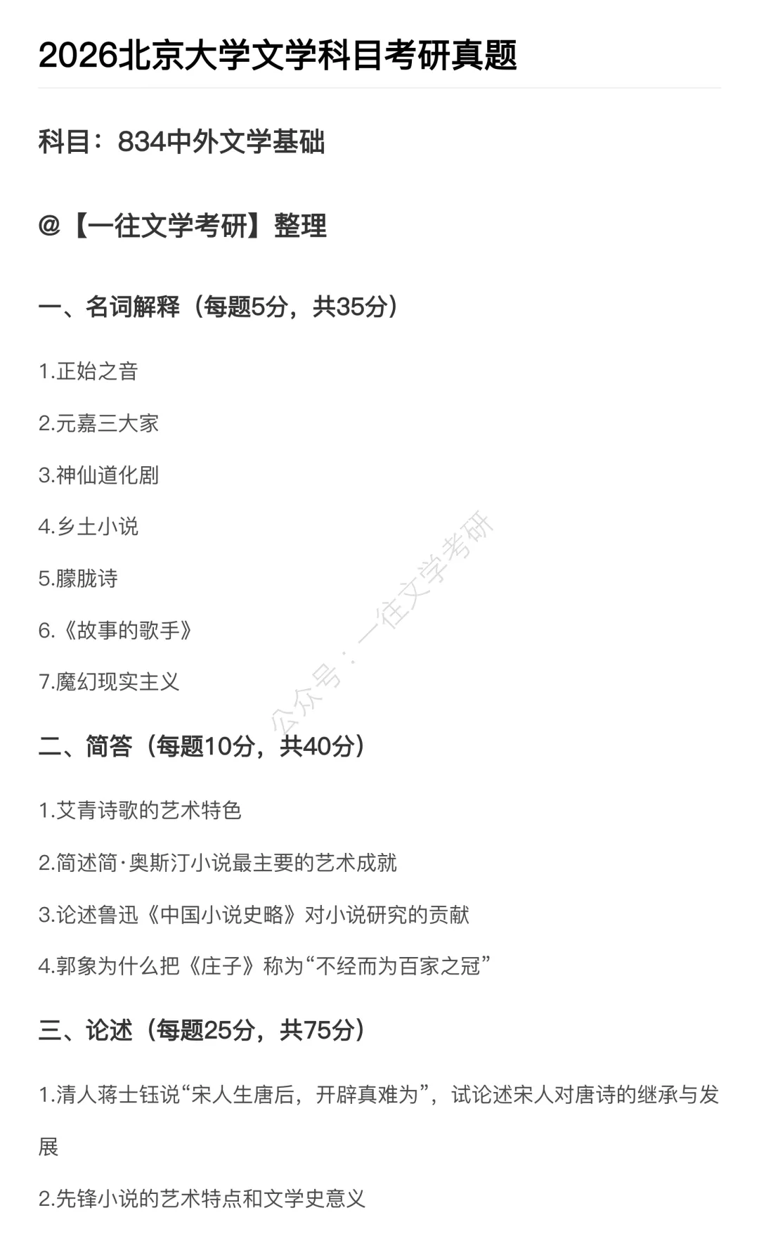 今天给大家做北大古代文学26年真题的逐题解析。各位考北大的宝子,可以收藏文章,经常回顾。