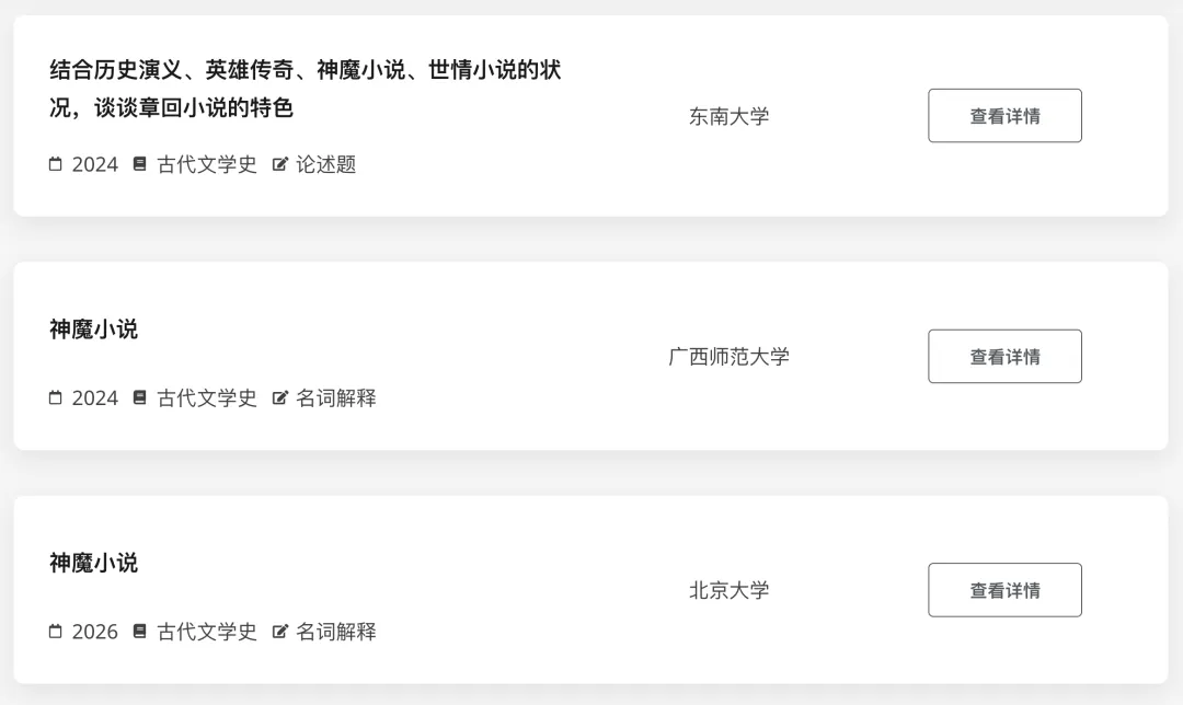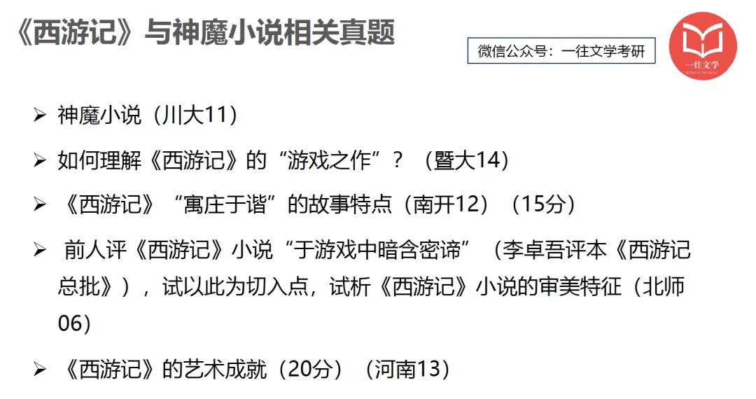 下面是这5年“神魔小说”的考题列表:
