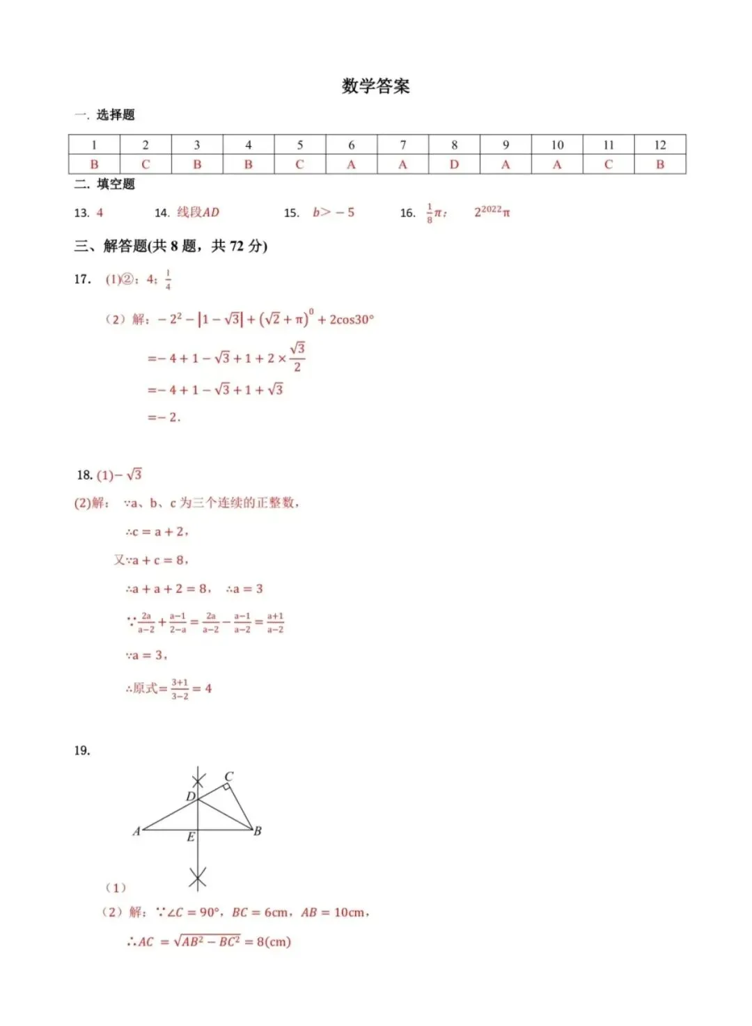 26.1河北省期末考试八年级数学试卷含答案(冀教版)