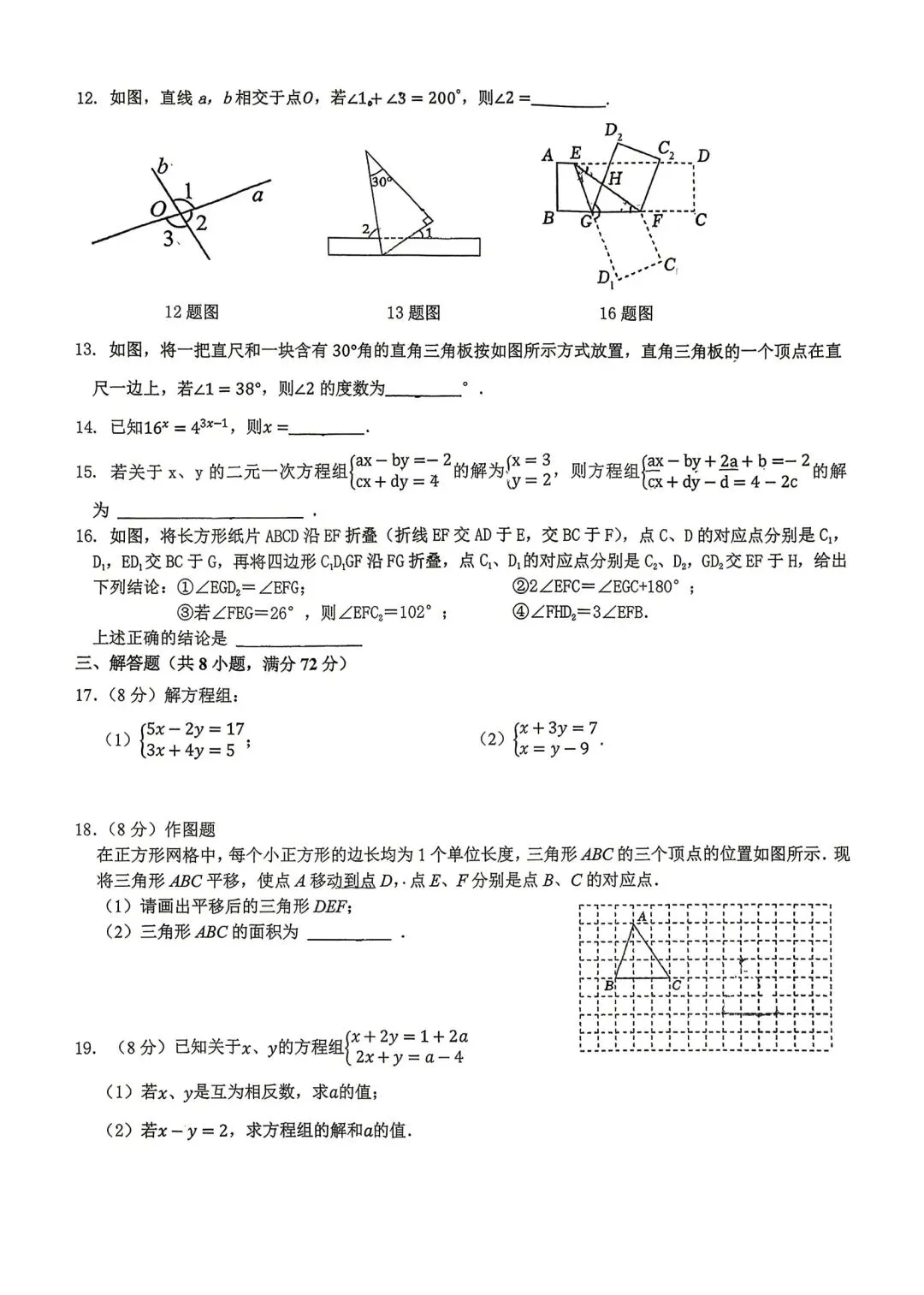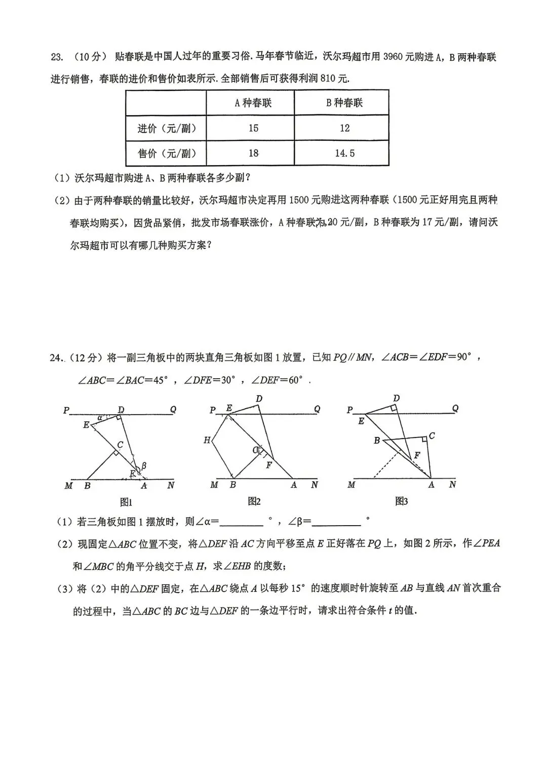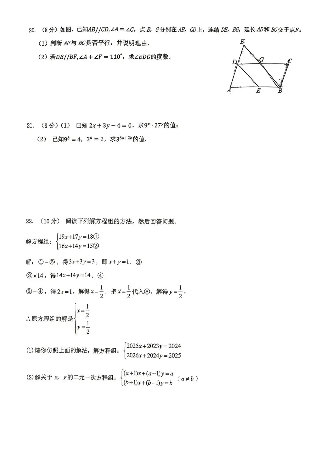 26春七年级下册数学第一次月考试卷(考试范围第7--8章)(原卷版)|完整高清电子版可打印!