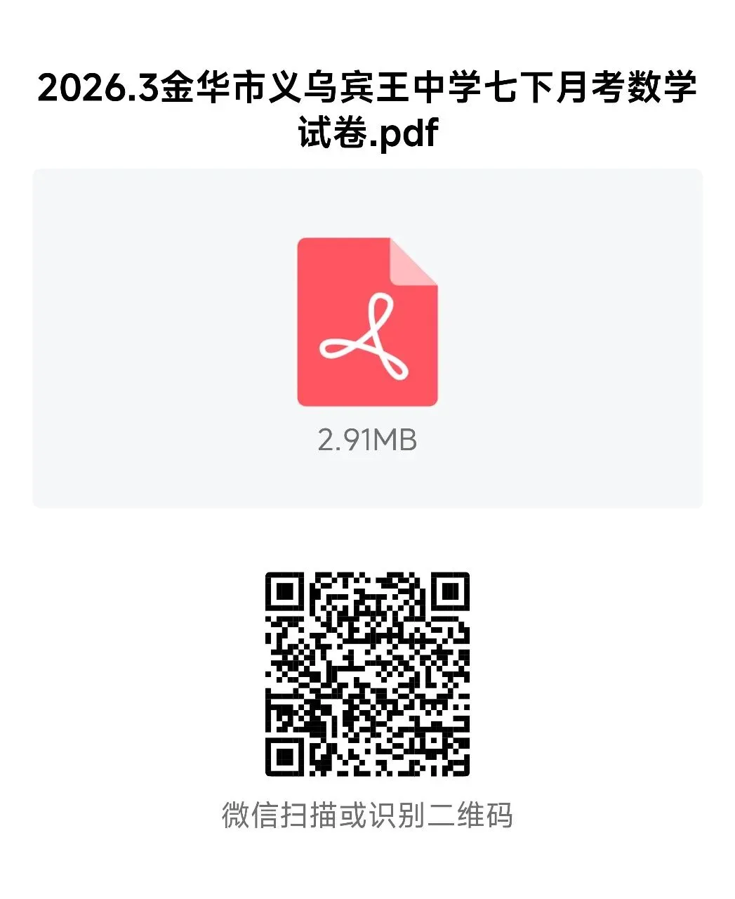 >【2026浙江试卷】金华市义乌宾王中学七下月考数学试卷(2026.3)