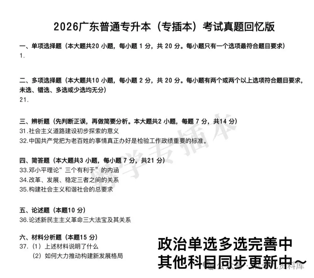 2026年专插本考试已圆满落幕,各位考生辛苦了!备受期待的考试真题现已正式出炉,为帮助大家及时估分、梳理考点,我们第一时间整理汇总了真题内容,清晰呈现每一道考题,助力各位快速核对答案、明确备考成果。