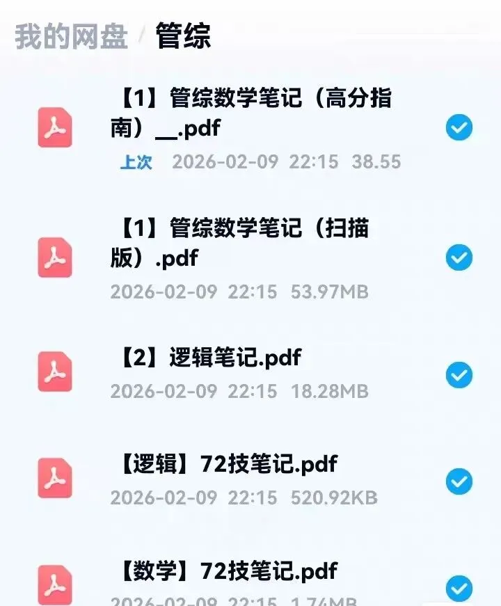 链接如下,自行下载【超级会员V2】通过百度网盘分享的文件:199管理学综合…等10个文件链接:https://pan.baidu.com/s/1QhCslMQdy-53795UmERGtQ?提取码:6666复制这段内容打开「百度网盘APP 即可获取」199管综数学72技/81绝/高分指南听课总结笔记+逻辑72技以及逻辑总结笔记都是根据相关老师,自己总结整理而来内容超全!包含管综数学高分指南听课笔记、数学72技、逻辑72技、81绝等PDF电子版,知识点整理清晰,结构合理,适合管综数学、逻辑等考试备考,刷题背诵都很方便!赠送:199管综真题+管综思维导图