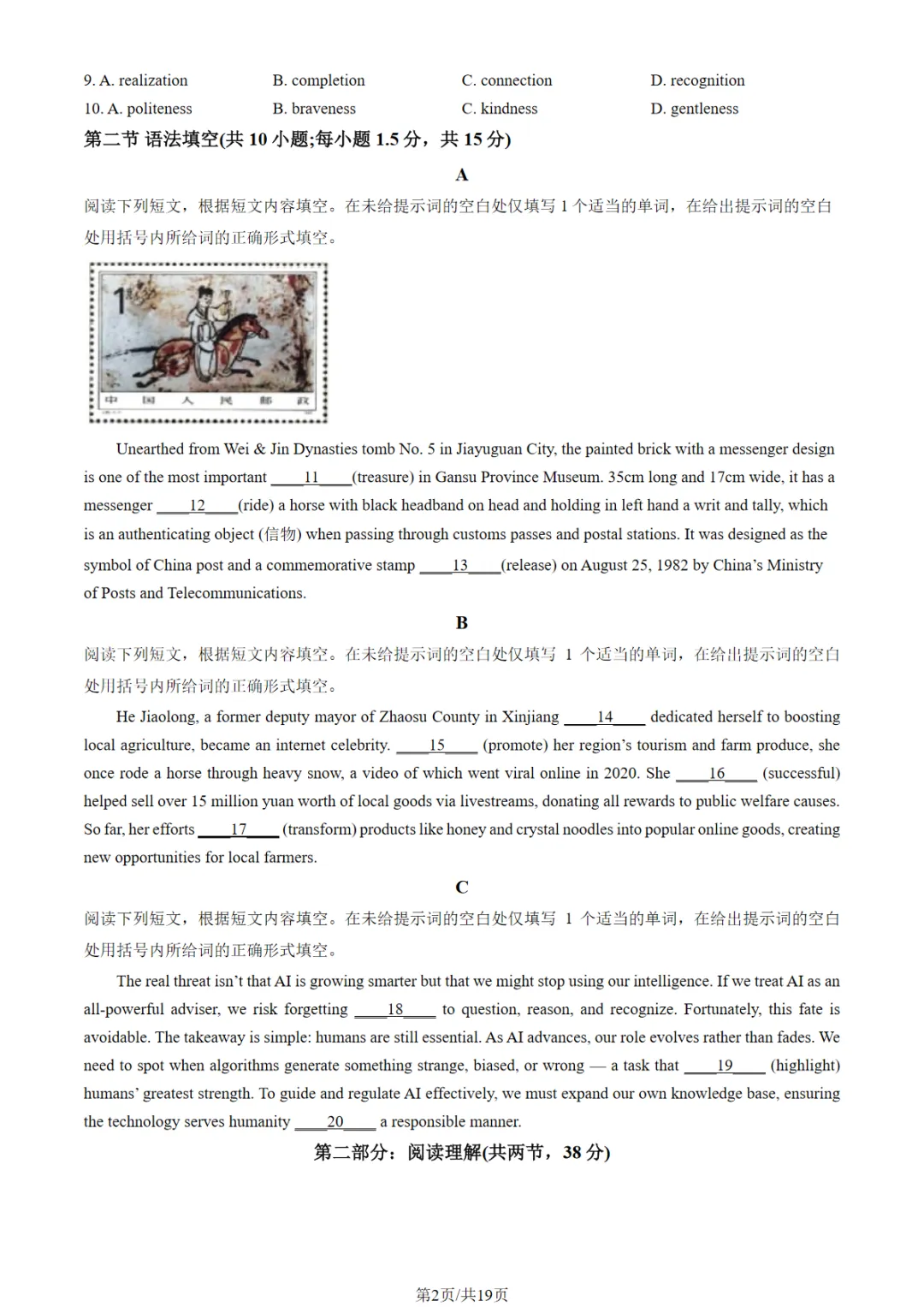 贵州专升本试卷答案完整版!2026年3月贵州专升本考试《英语》《语文》《高数》真题+答案pdf