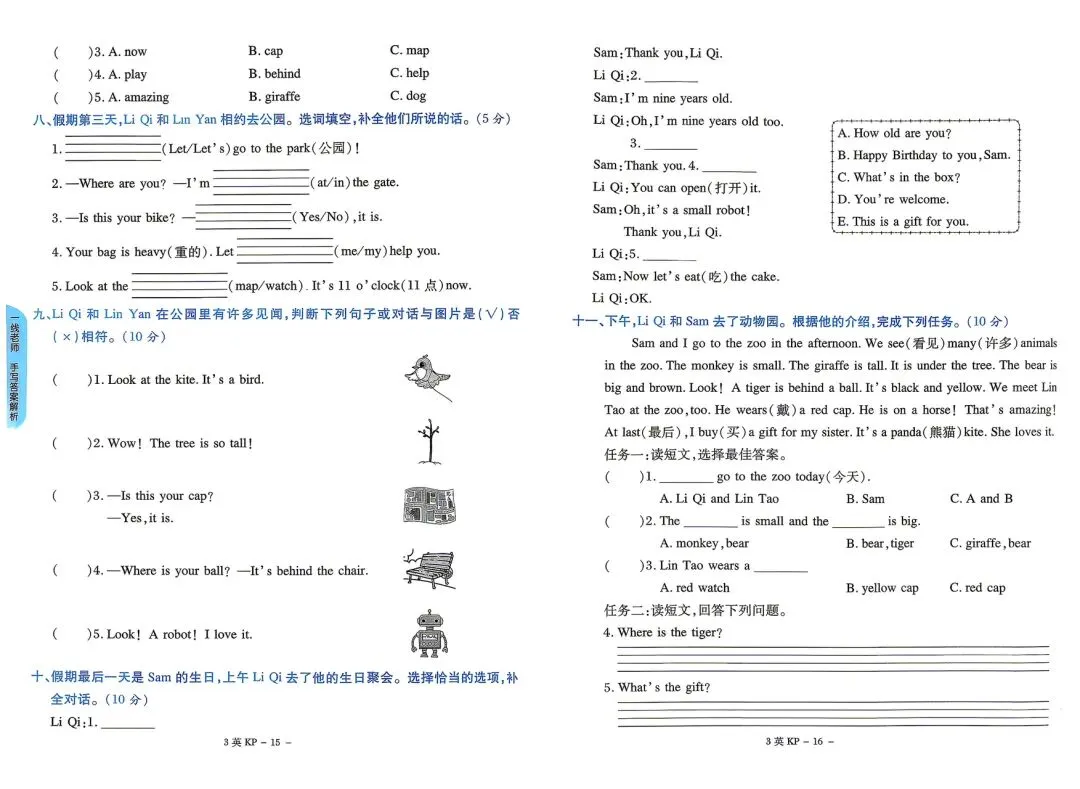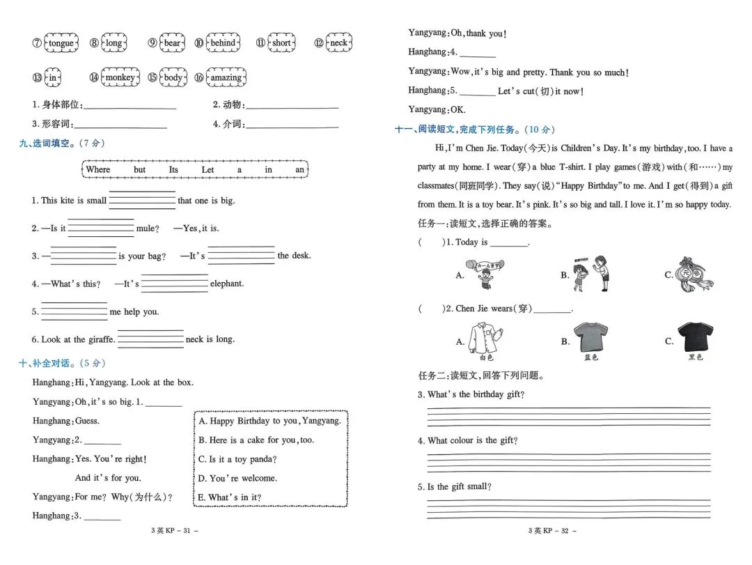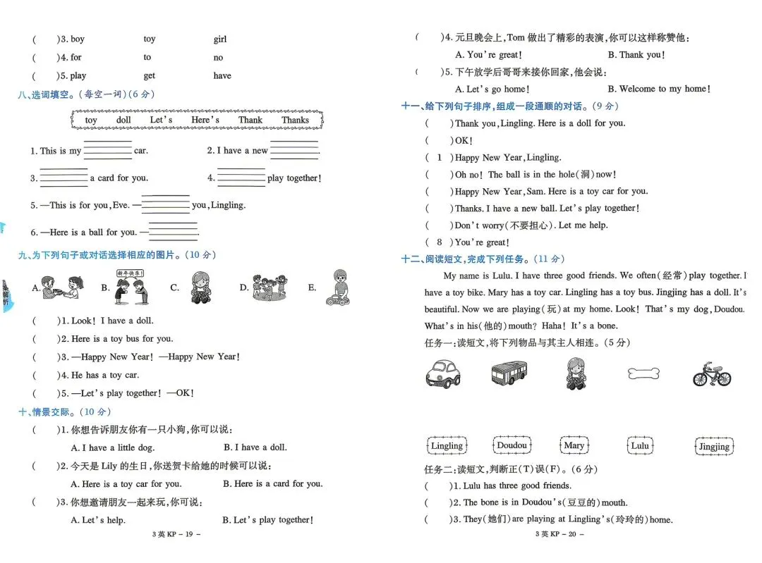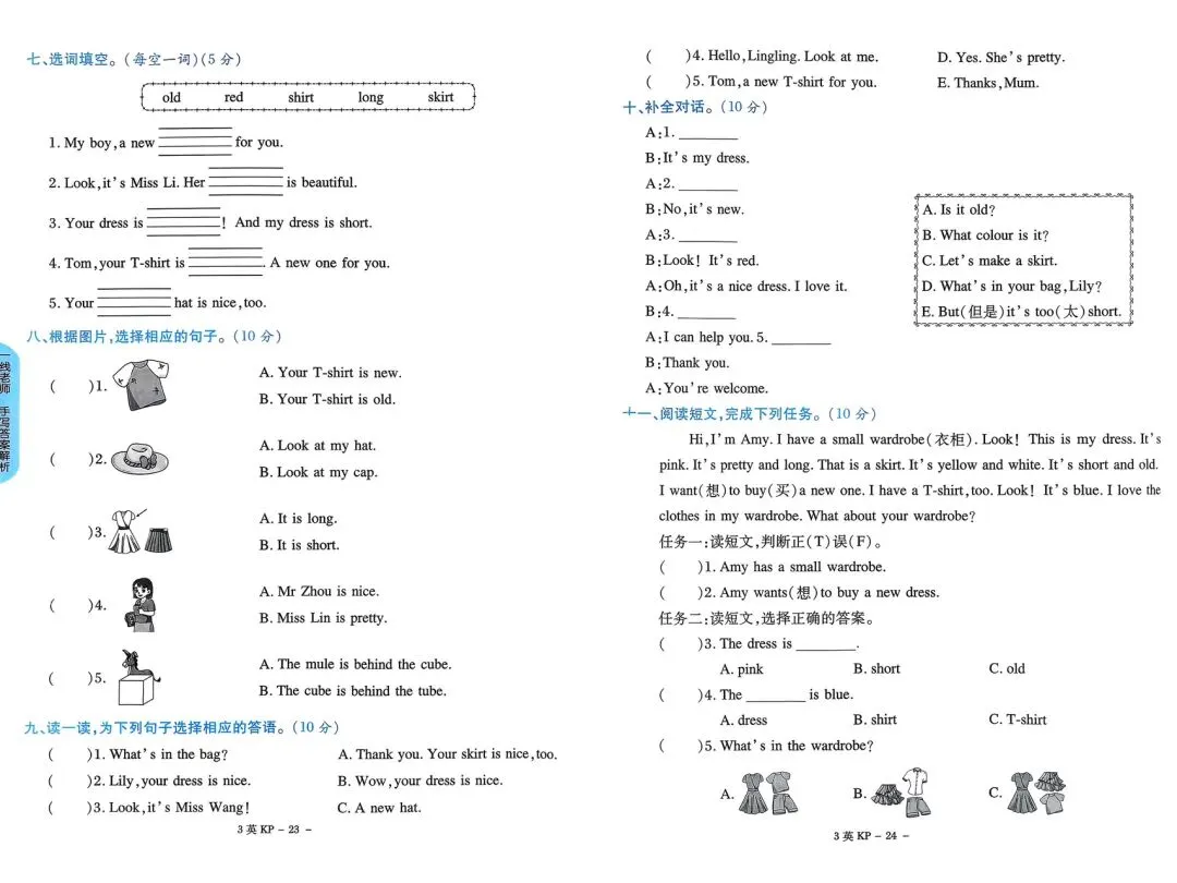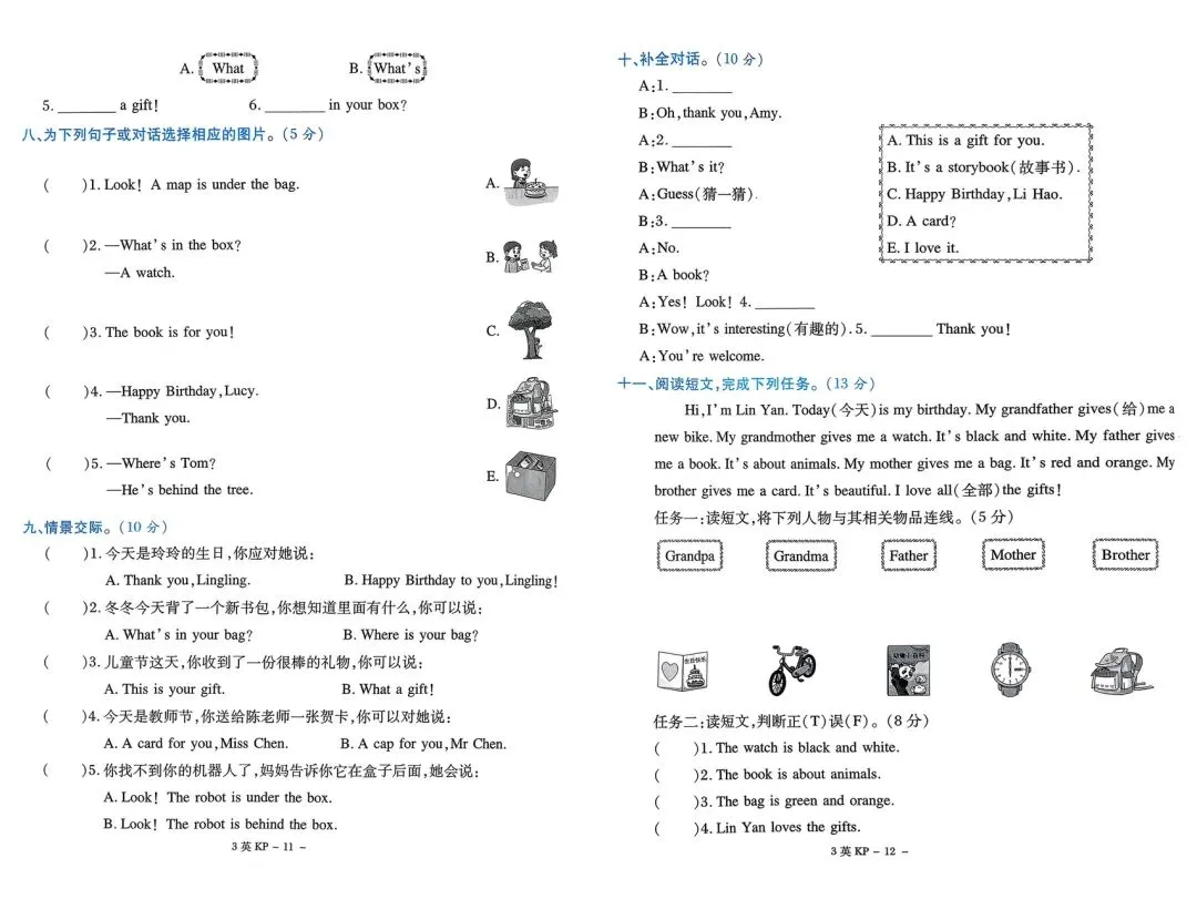 新!科普英语三下《优佳好》试卷7-12单元精选及答案