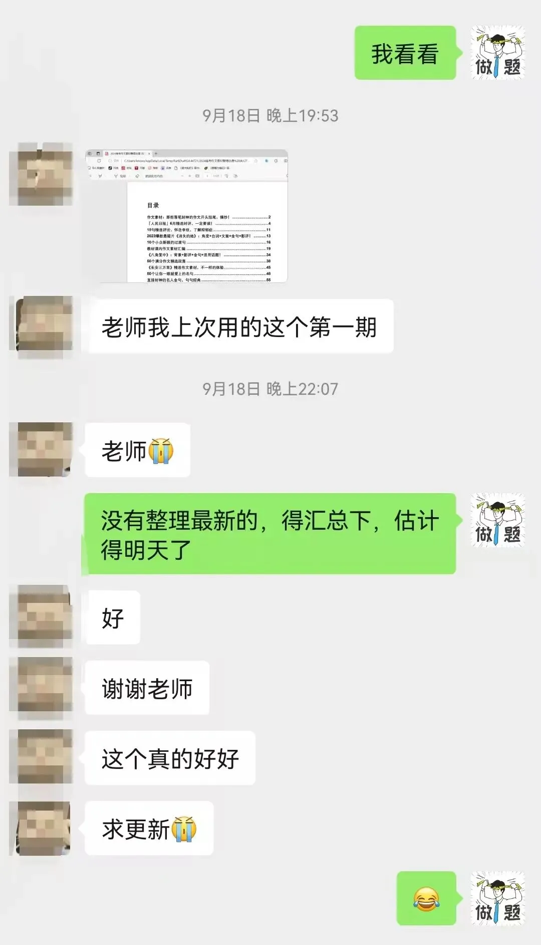 做完我给他发消息:
