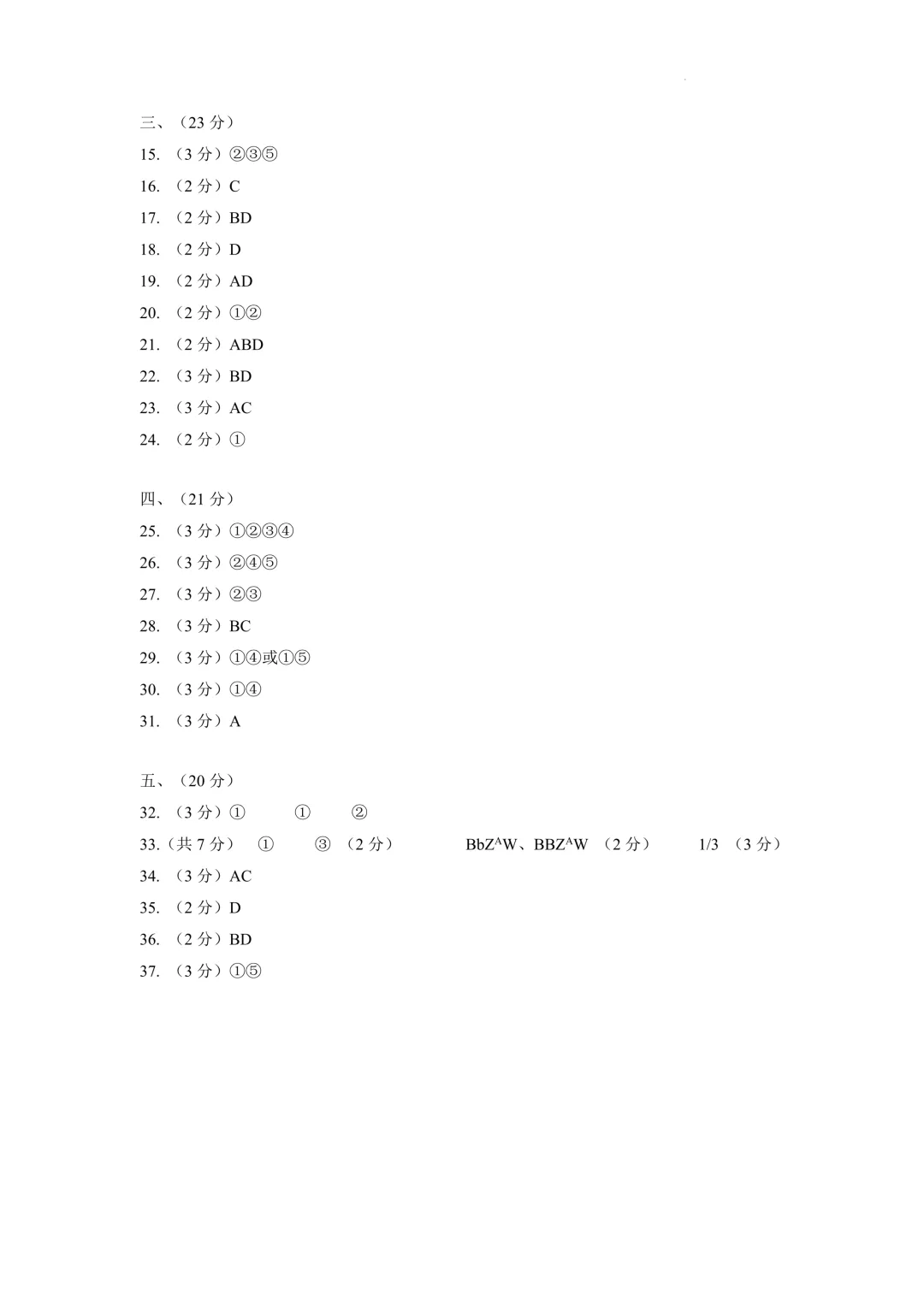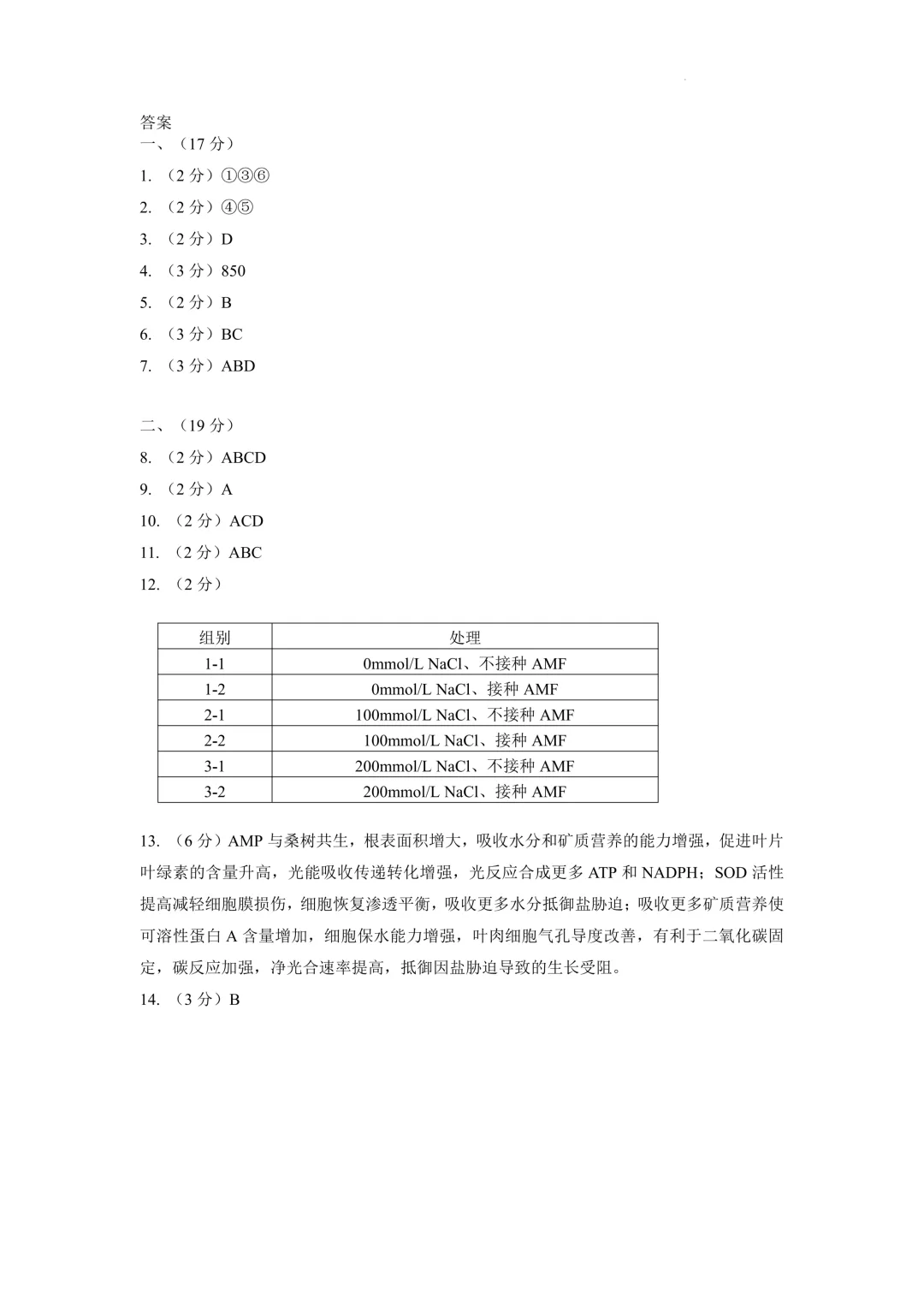 >【上海名校试卷】2026届上海市松江二中等六校高三下学期联考生物学-答案