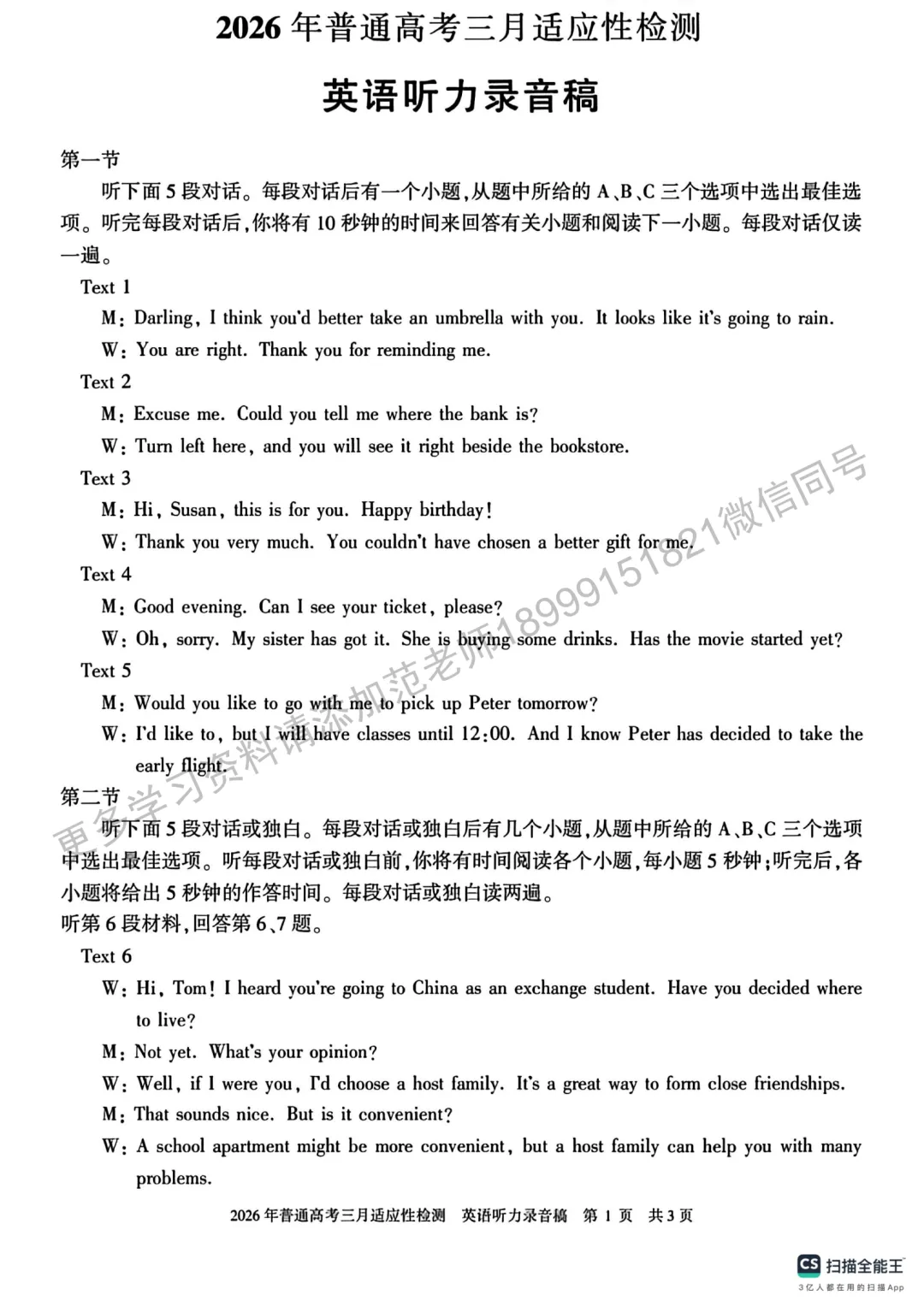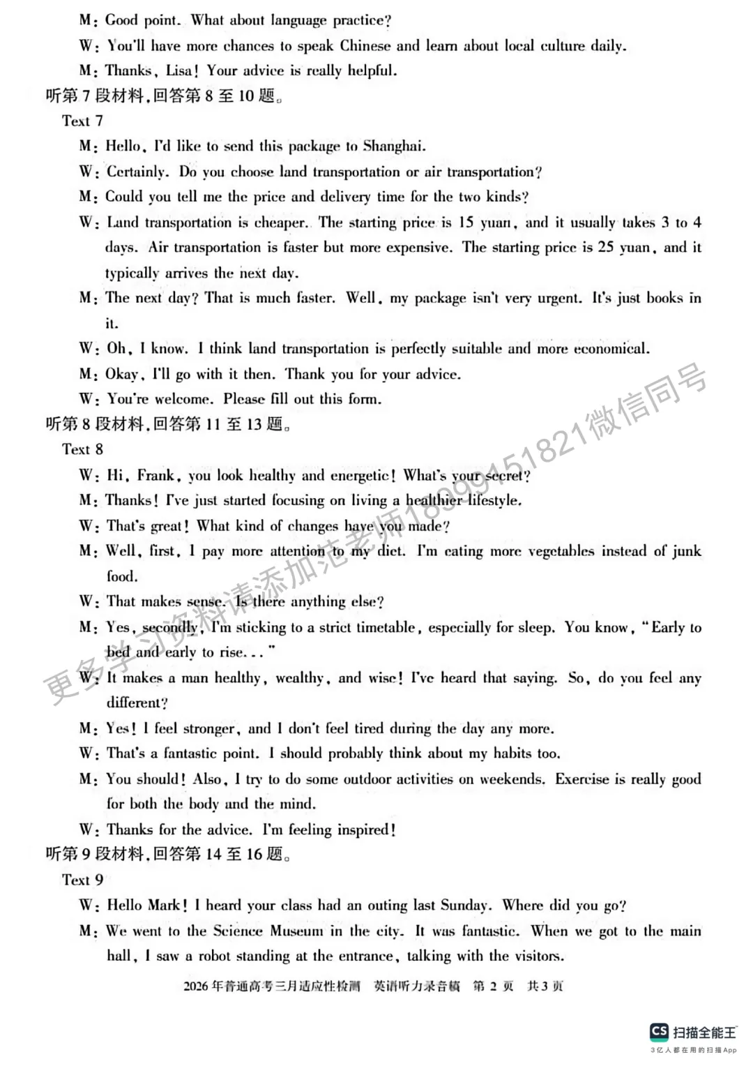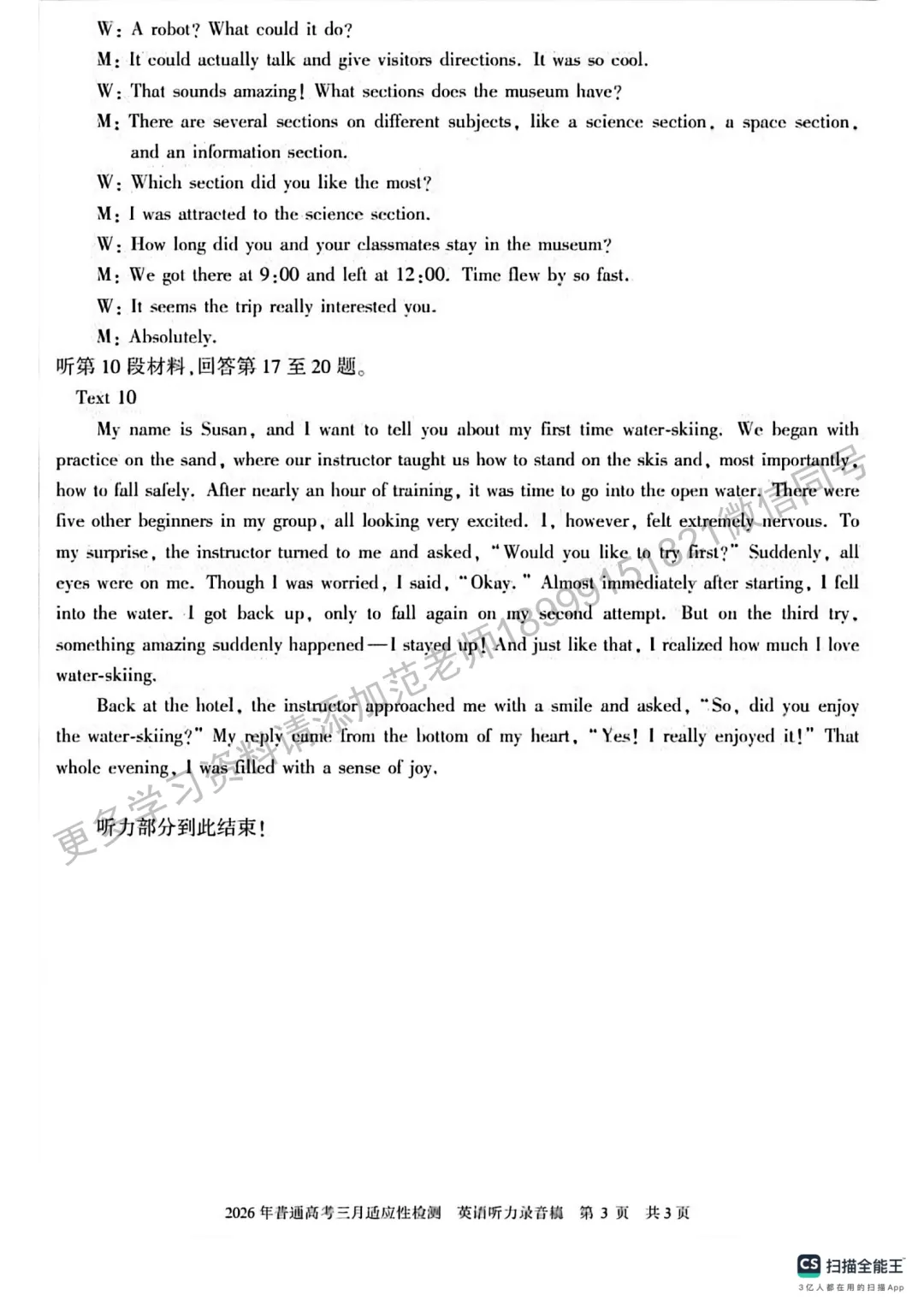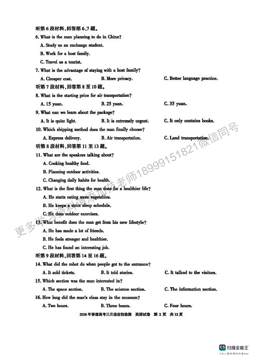 2026年初中学业水平质量监测英语试卷