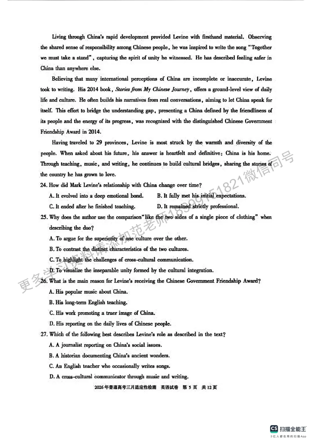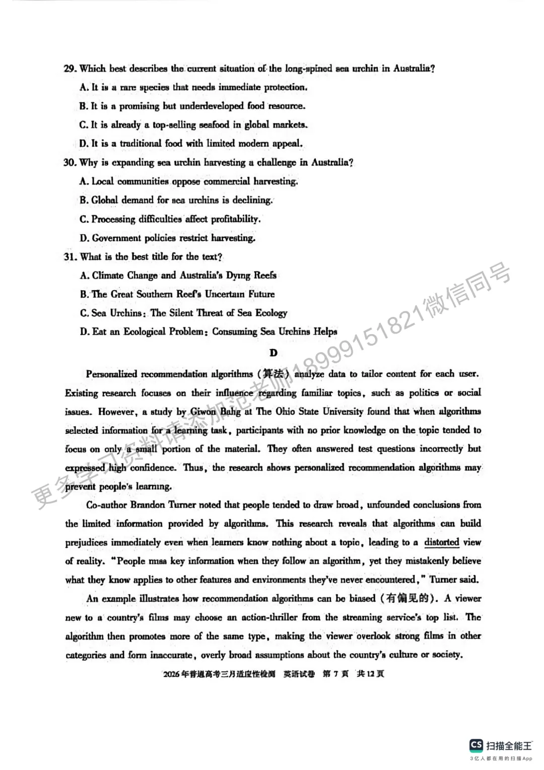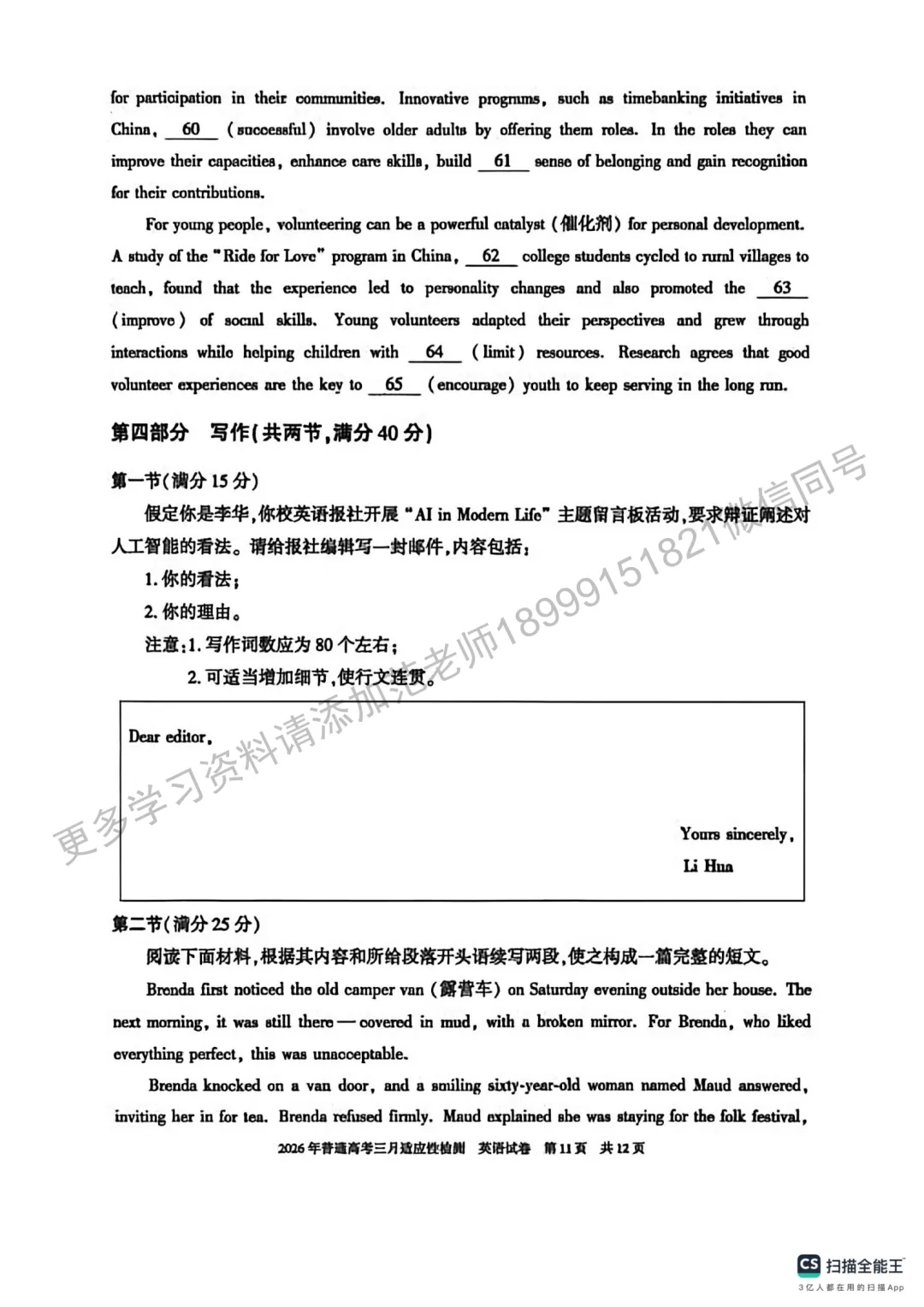 >2026年自治区高考二模英语试卷附答案解析