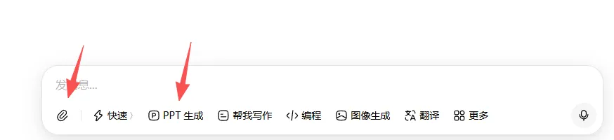 1、打开豆包。导入试卷和答案的PDF电子版。回形针样子的标识是导入文件,选择PPT生成。
