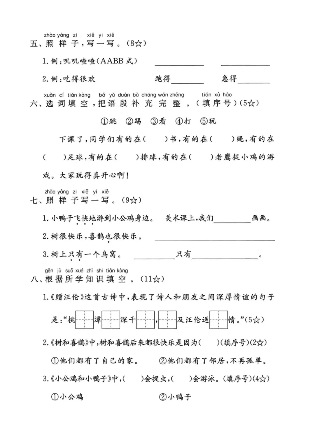 【海豚试卷】二年级(下)语文1-8单元生字词语默写通关(PDF版可打印)