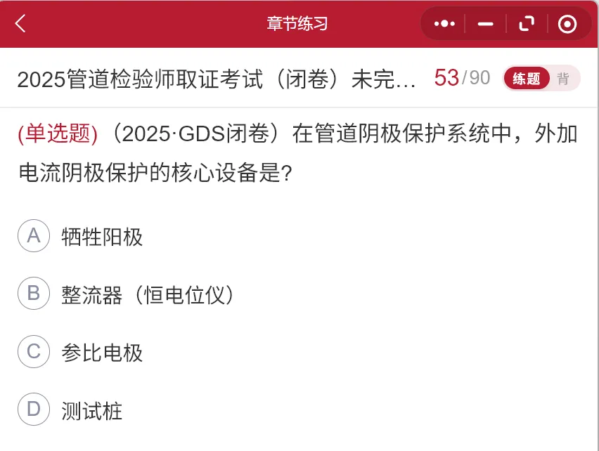 20.(2025·GDS闭卷)长度为4.6公里的埋地输油管道,腐蚀防护等级为2级,根据规范要求,其开挖检测的最少点数应为?