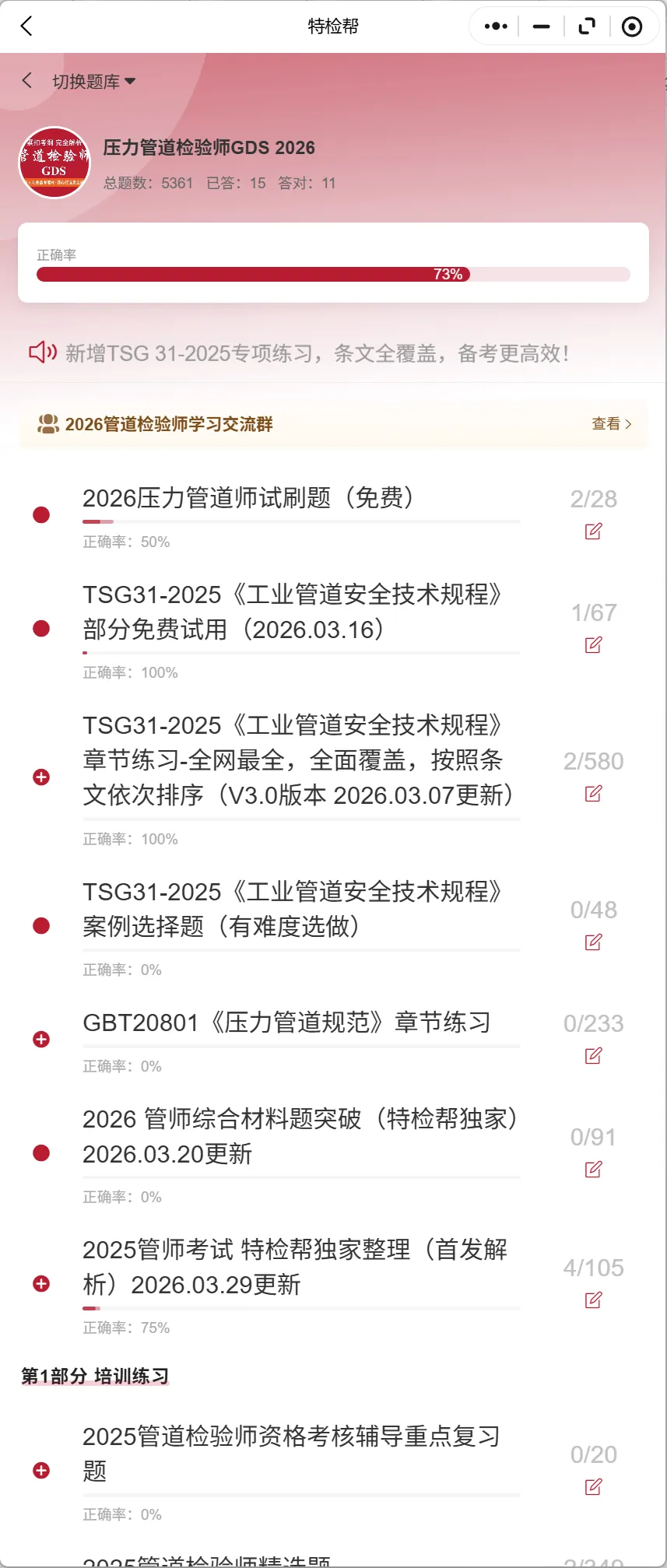 2.(2025·GDS闭卷)热力管道压力试验时,所使用的压力表精度等级应不低于?