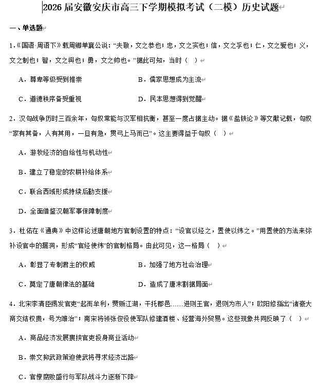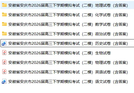 >【高三试卷】安徽安庆市2026届高三下学期模拟考试(二模)(全科)