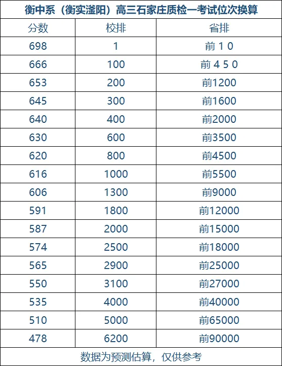 分数出来了,别光盯着分焦虑。今天教您一招:用这次考试的分数、校内排名,和石家庄一模卷的考试分数,换算省排名,心里就有底了。