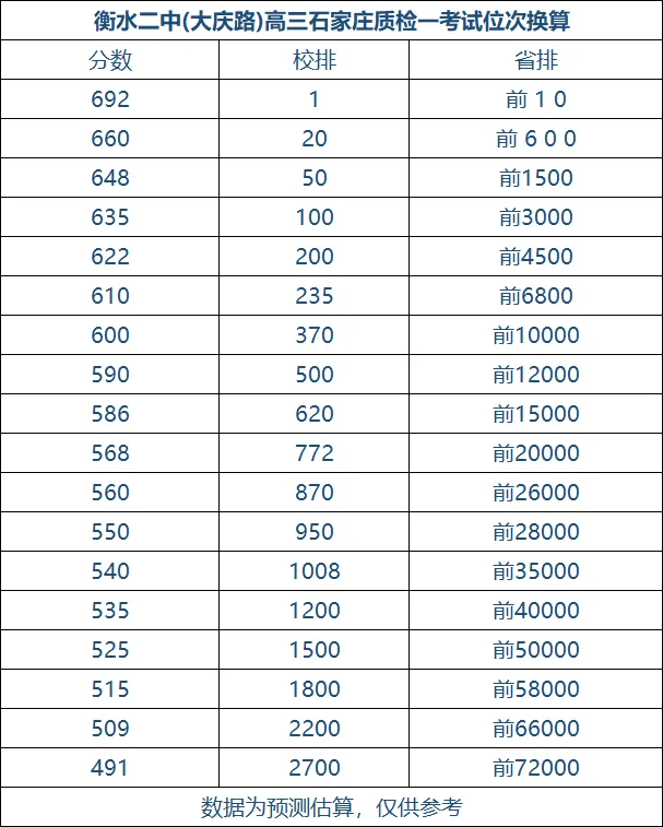 3、其他高中,考了石家庄质检一试卷的家长直接用分数去衡中和衡二的分数去对应省排名