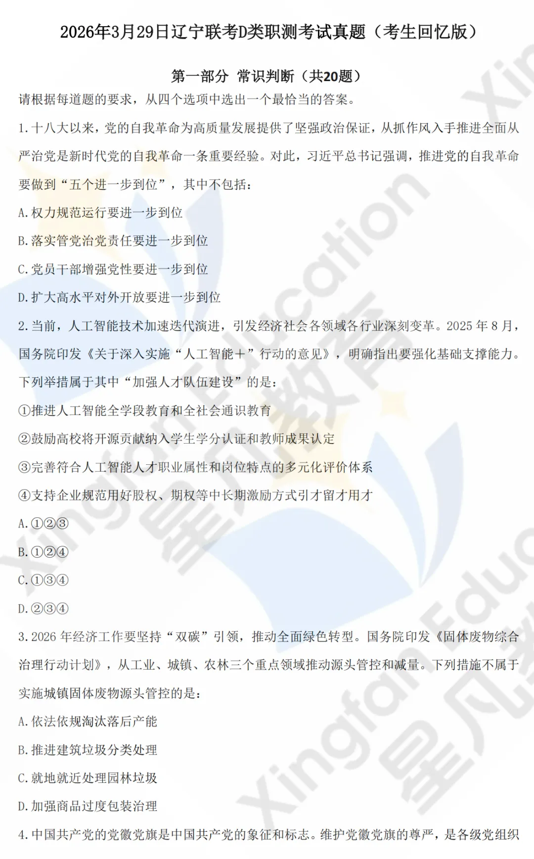 >2026年3月29日辽宁联考D类职测考试真题(考生回忆版)