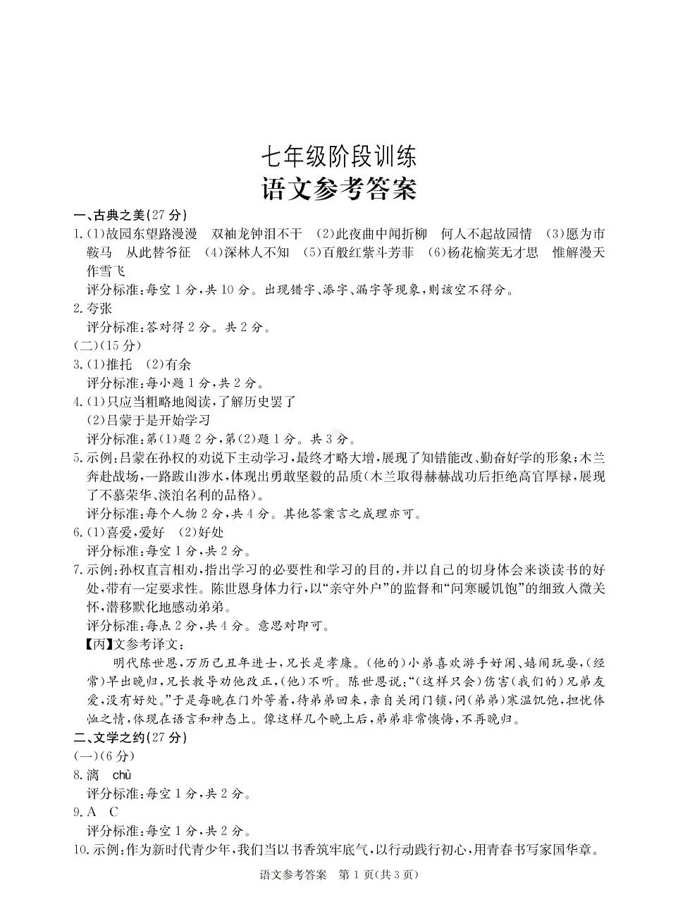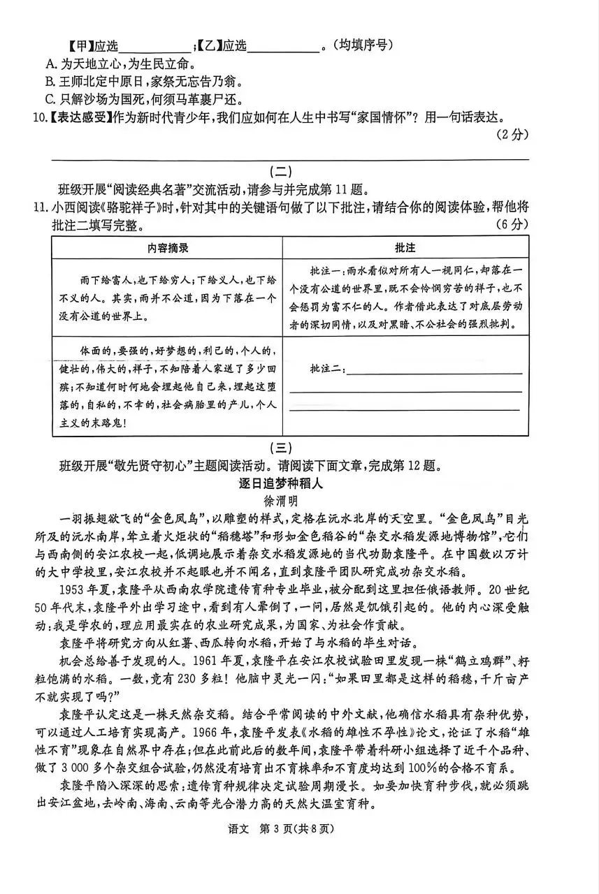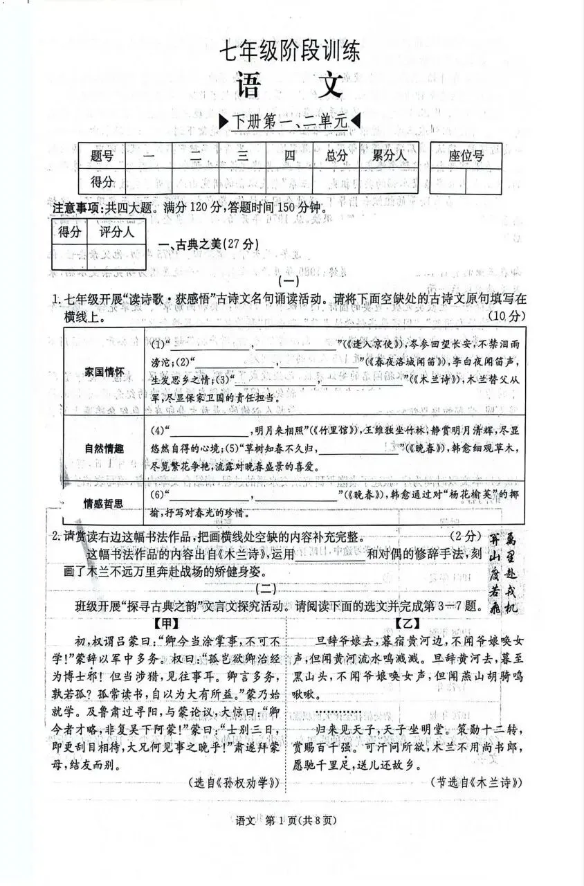 >【语文试卷】山西省2025-2026学年第二学期七年级第一次阶段训练试卷