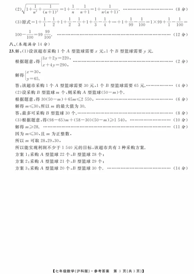 江淮名卷七年级下学期数学第一次月考试卷
