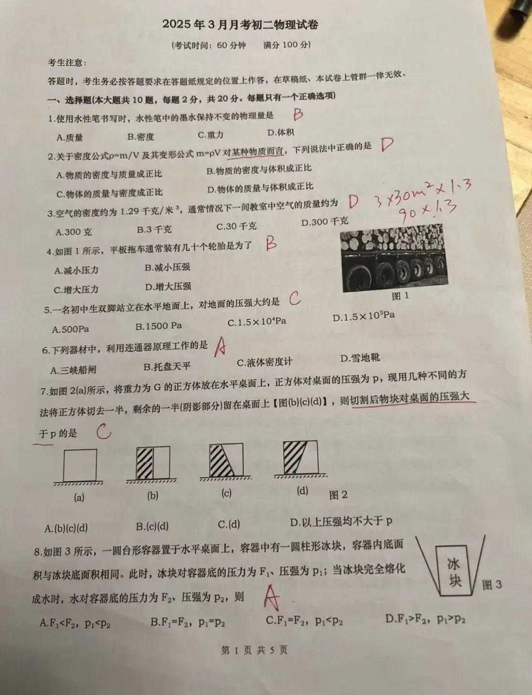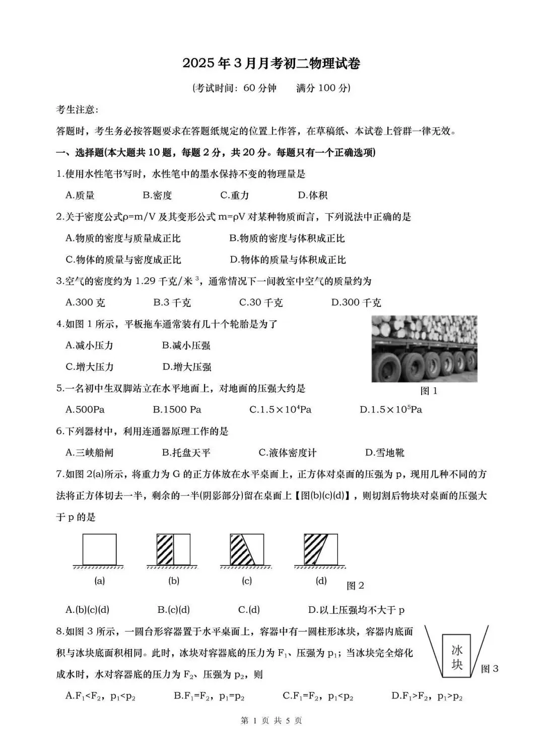 上海徐汇中学八年级下学期3月月考物理试卷