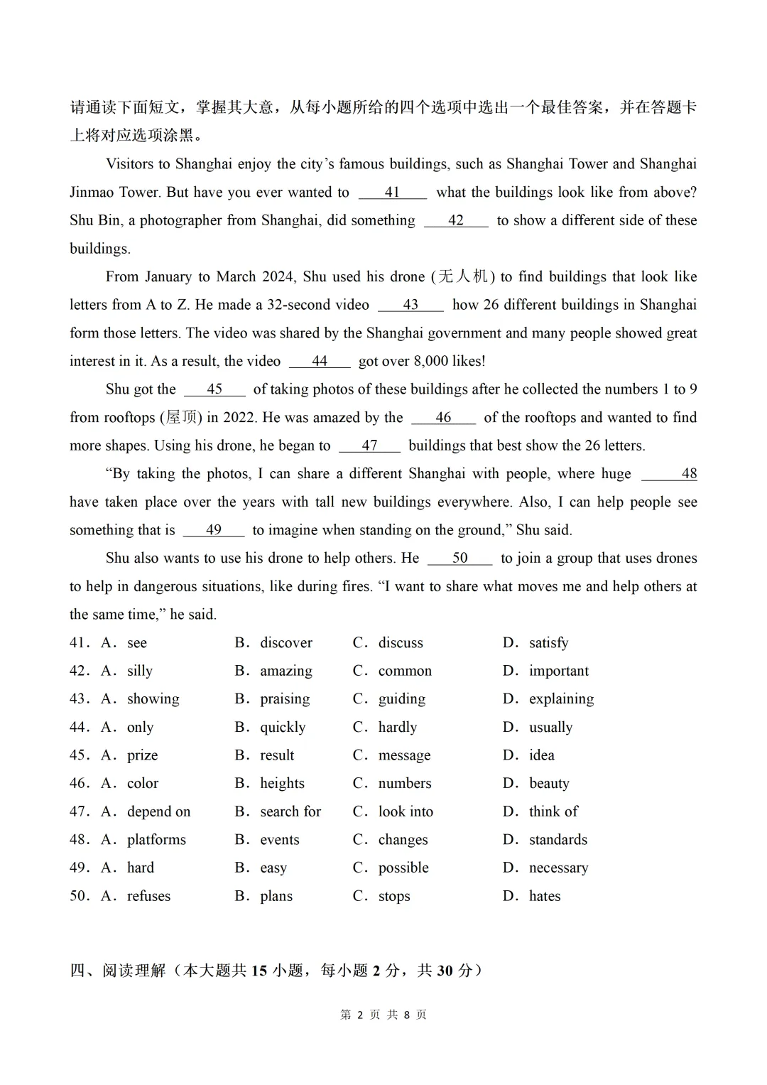 2025年上海市高考真题试卷及答案解析(PDF版免费分享)上海市高考真题及答案解析