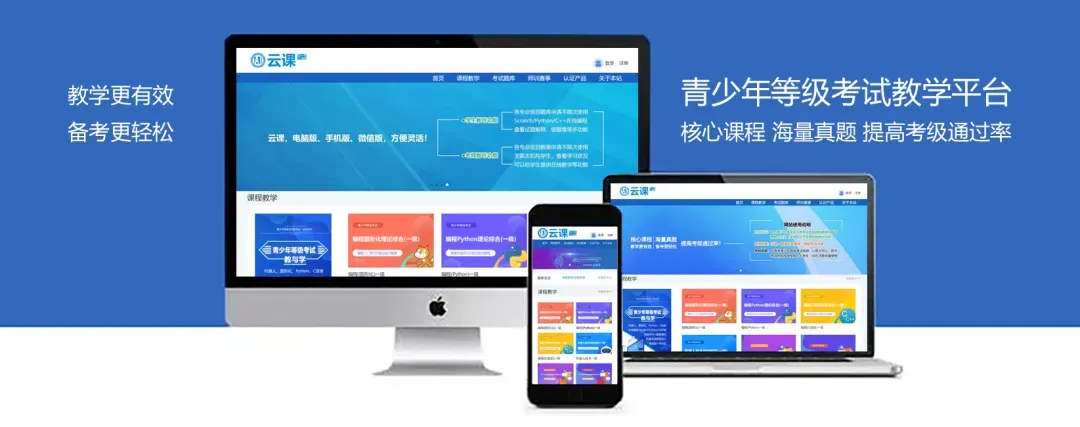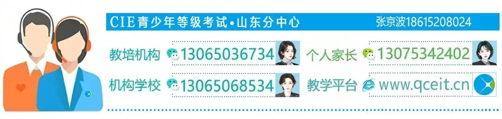 青少年等级考试教学平台,www.qceit.cn,内有考级各专业级别的课程教案和历年题库,在线编程(Scratch/Python/C++),可在电脑和手机端运行,经历次考级成绩验证,使用该平台能培养学员自主考级的意识,也可提高考生的考级通过率。青少年等级考试山东分中心,由中国电子学会授权,负责青少年等级考试的组织推广,是《Scratch编程入门与算法进阶》和《Python编程入门与算法进阶》《人工智能科普知识手册》等丛书的编委单位,连续五年荣获"青少年等级考试优秀服务中心"