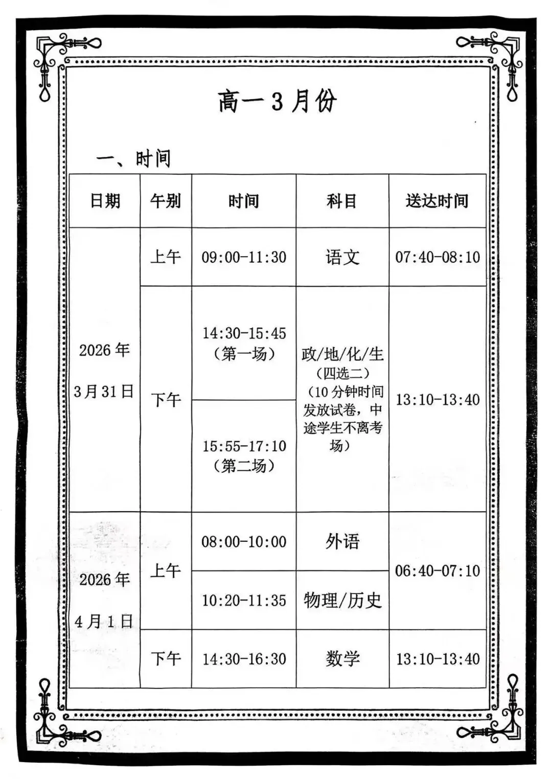 考试日期:2026年3月31-4月1号
