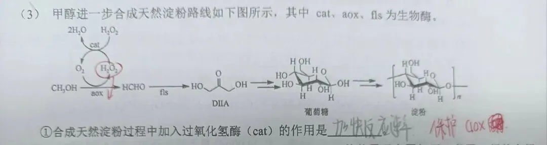 这时候我们就联想到了酶的变性。使酶变性的外界条件有很多,如强酸强碱,重金属盐,紫外线,振荡等等(这个学生物的同学应该比较熟悉)那么这在里我们可以看到产物中的双氧水似乎是符合这个条件的。(突然就想到了生物有氧呼吸里过氧化氢对这一过程的危害。。)