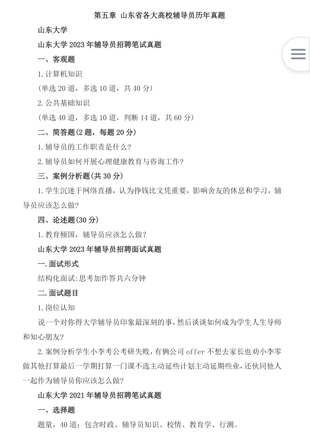 >山东高校辅导员考试真题【笔试+面试】可下载打印