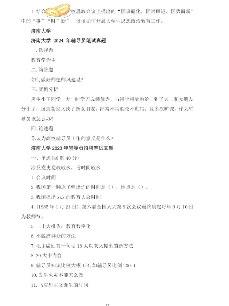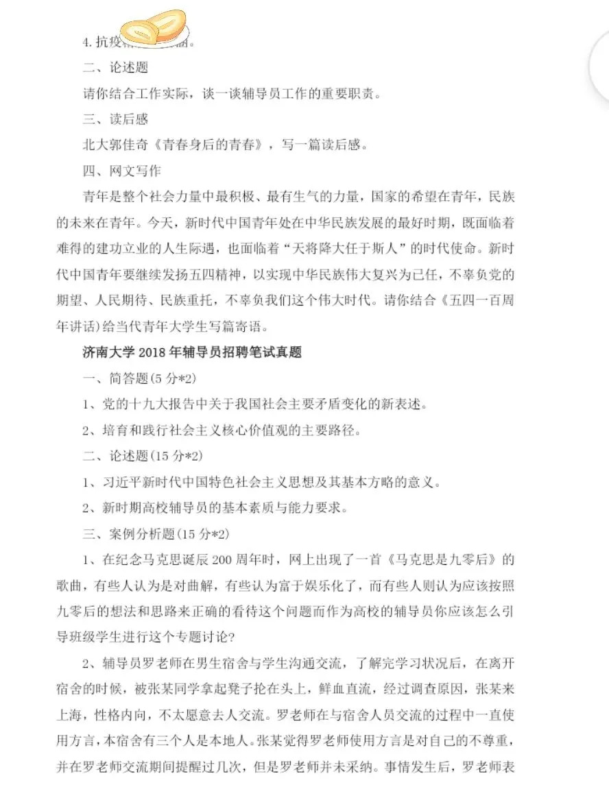 山东高校辅导员考试真题【笔试+面试】可下载打印