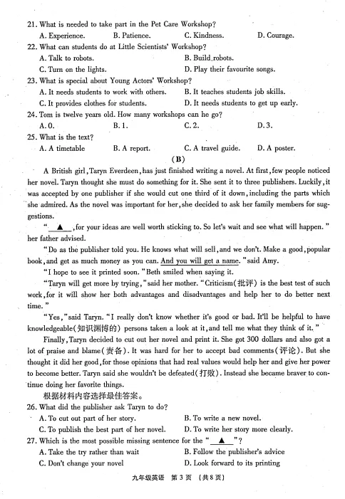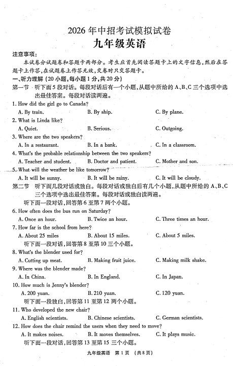 >2026年中考第一次模拟英语试卷