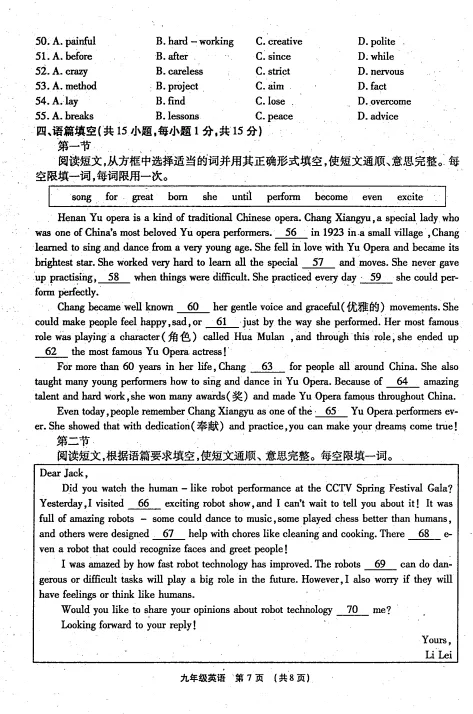 漯河实验中学&三中一模试卷&参考答案