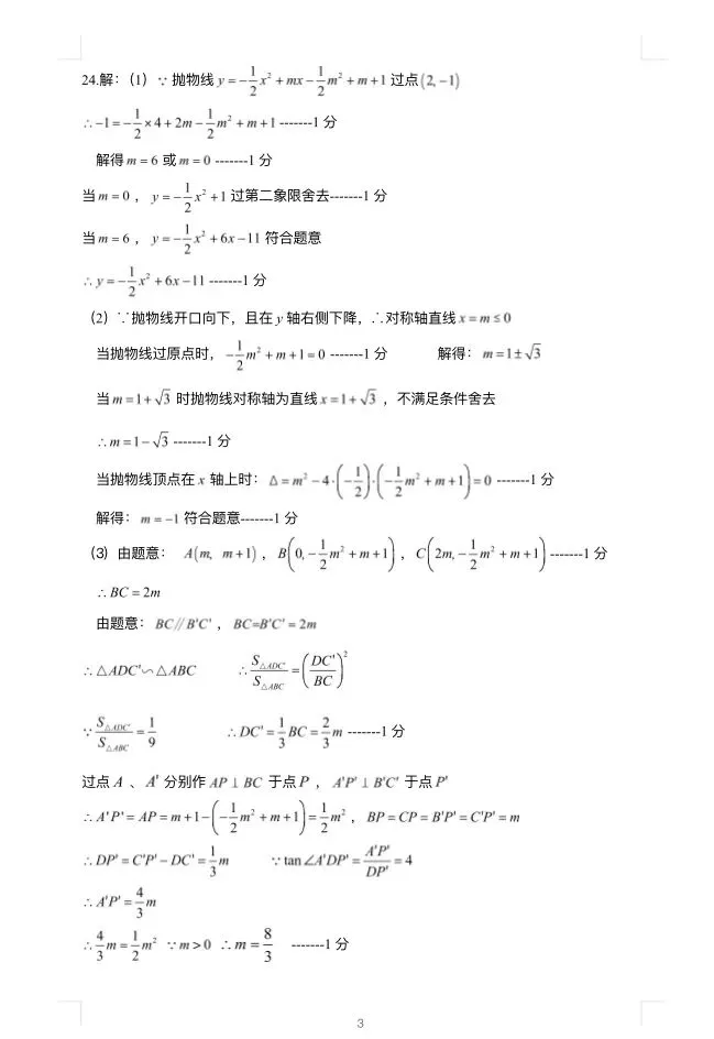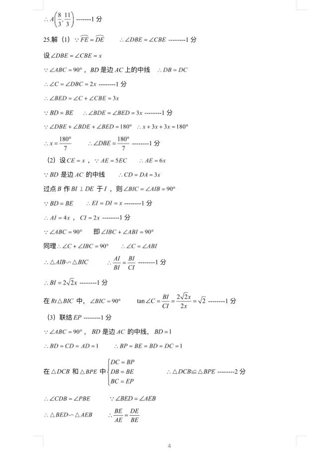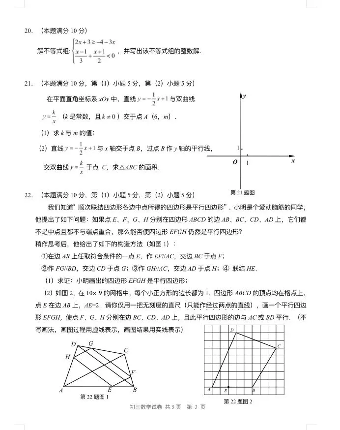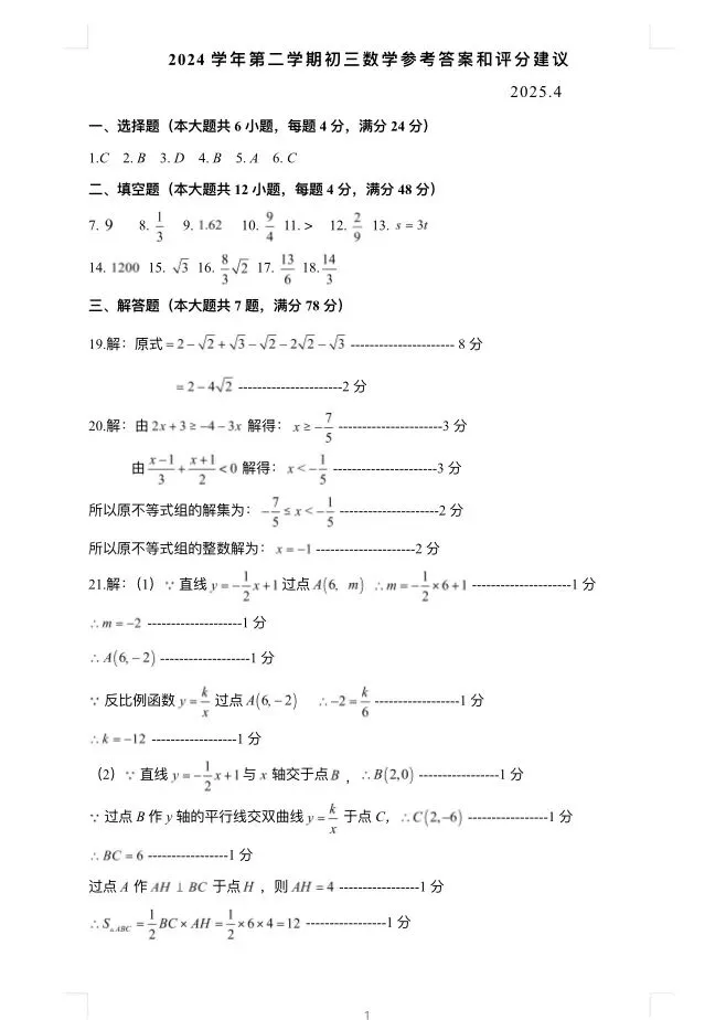 2025年长宁初三二模数学试卷及参考答案
