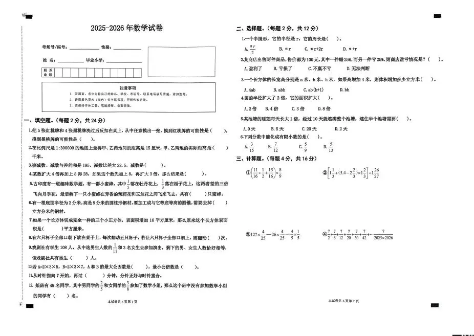 上次考的数学试卷