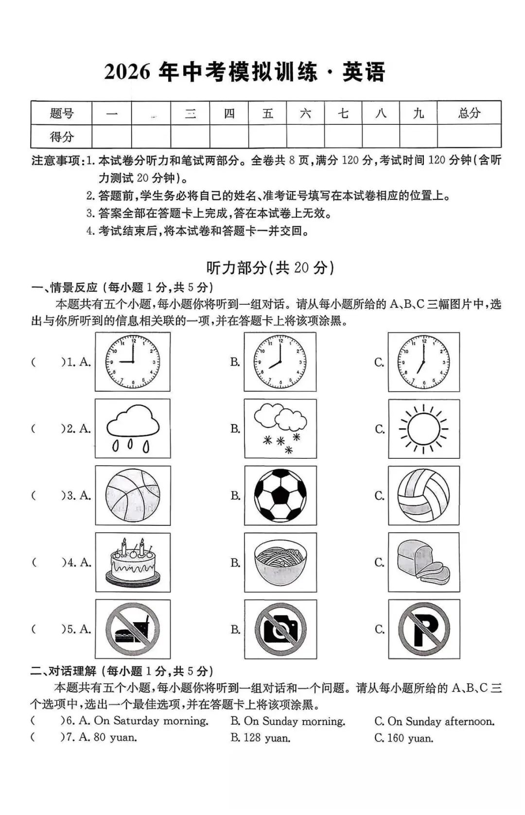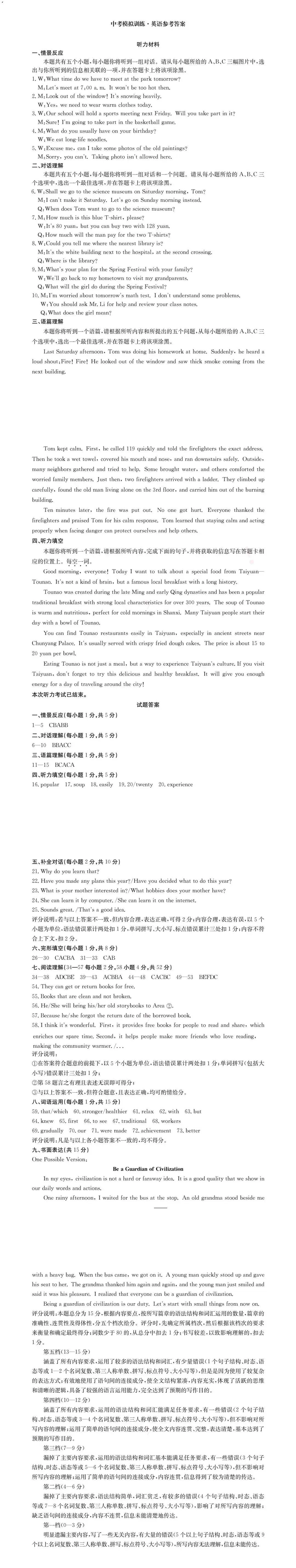 >【中考模拟】2026中考模拟(二)英语试卷听力答案