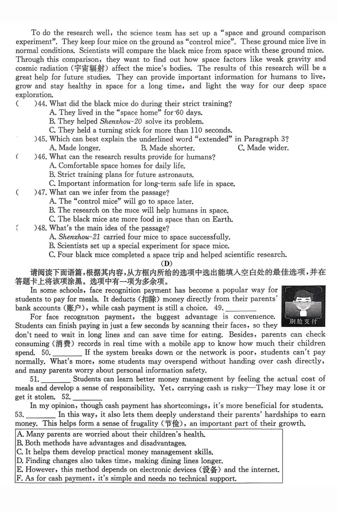 市三中西工大联考全科试卷及解析