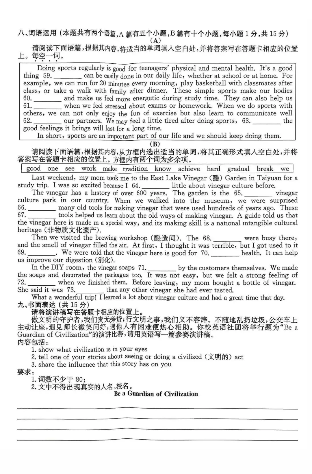 2025山西中考真题|含答案,可下载|山西中考复习|山西中考文化课统考