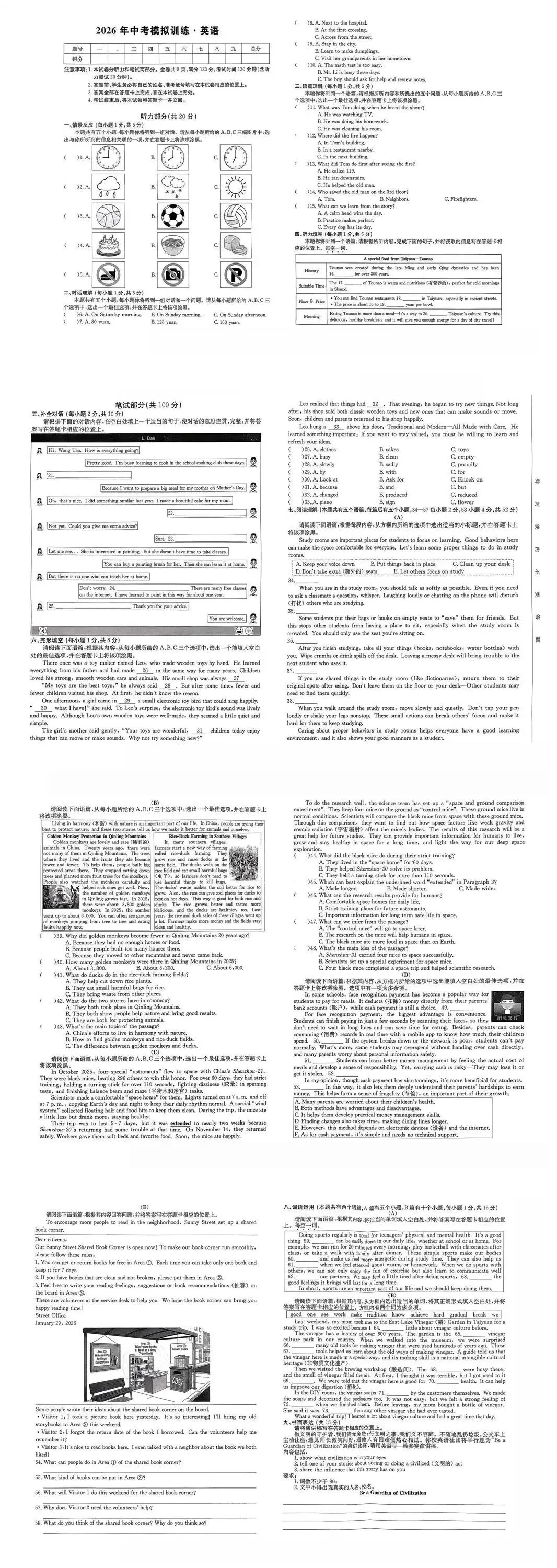【2026浙江试卷】衢州市柯城区中考一模试卷(语数英科社)(2026.3)