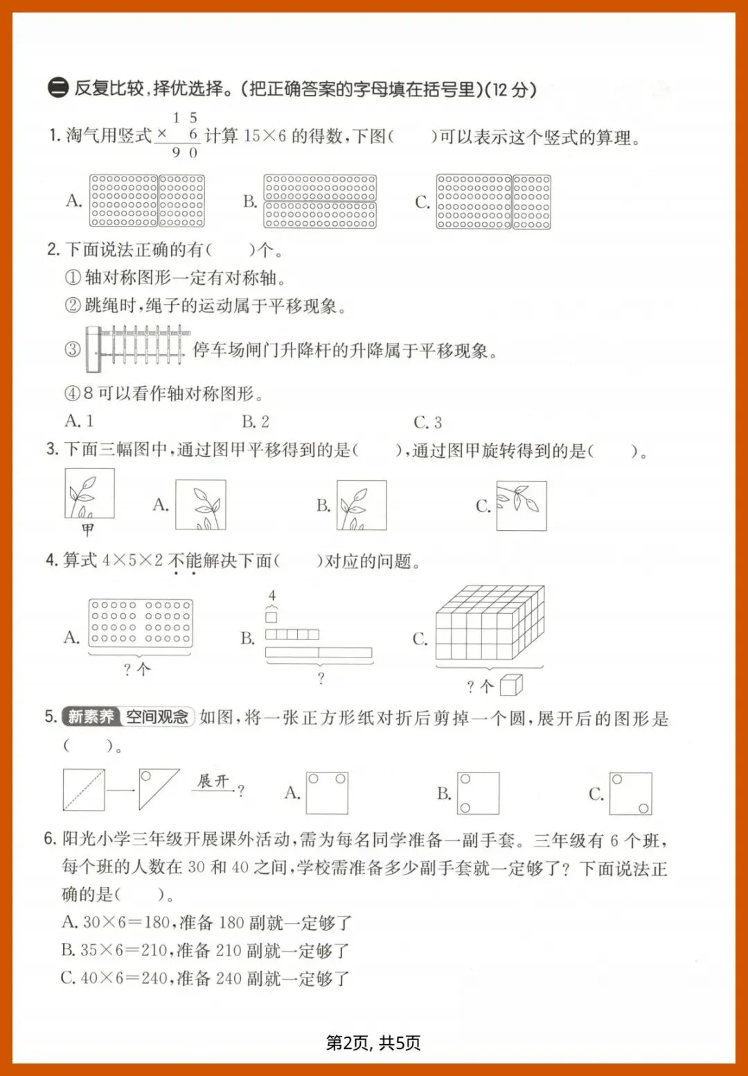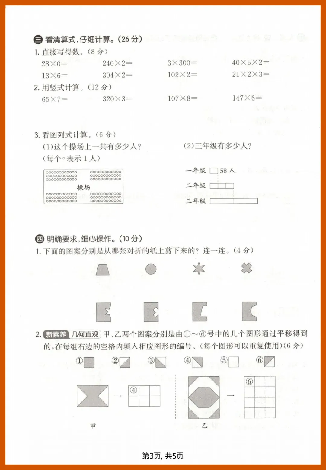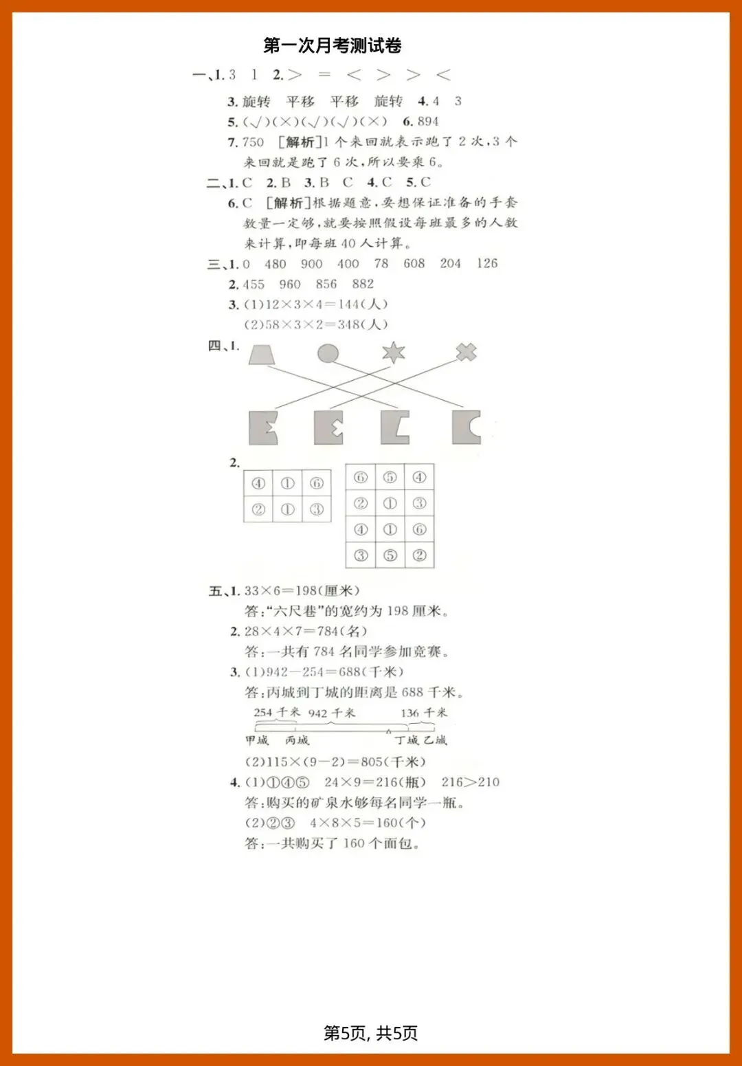 三年级(下)数学_第一次月考测试卷《北师版》,共5页,电子版可打印可下载。这份资料内容丰富,结构清晰,包含了核心知识点和练习题,帮助孩子巩固学习成果,及时发现不足之处,查缺补漏。有需要的家长抓紧打印出来给孩子练一练吧!