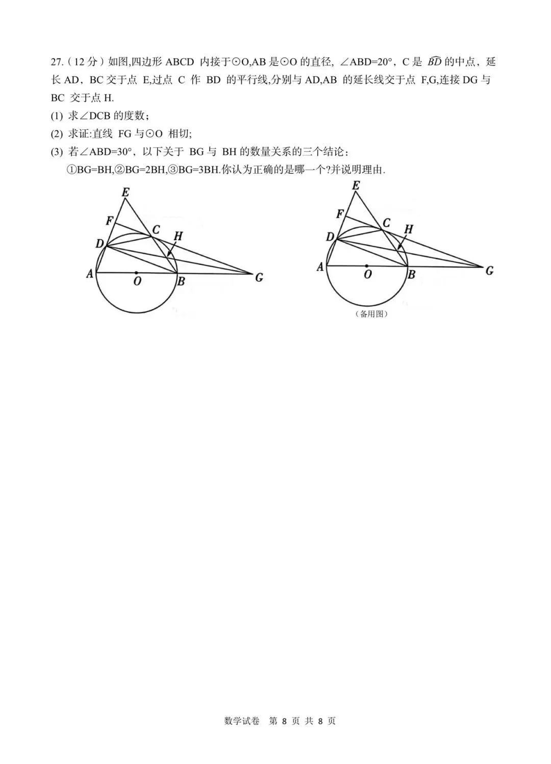 长沙一中2026届高三下月考8数学试卷