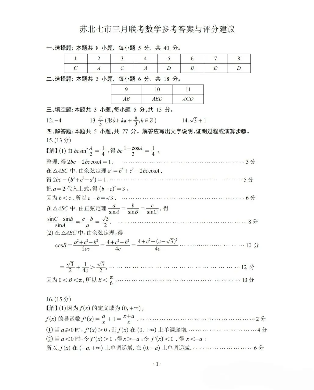 25-26苏北七市高三三月检测数学试卷(南通二模)