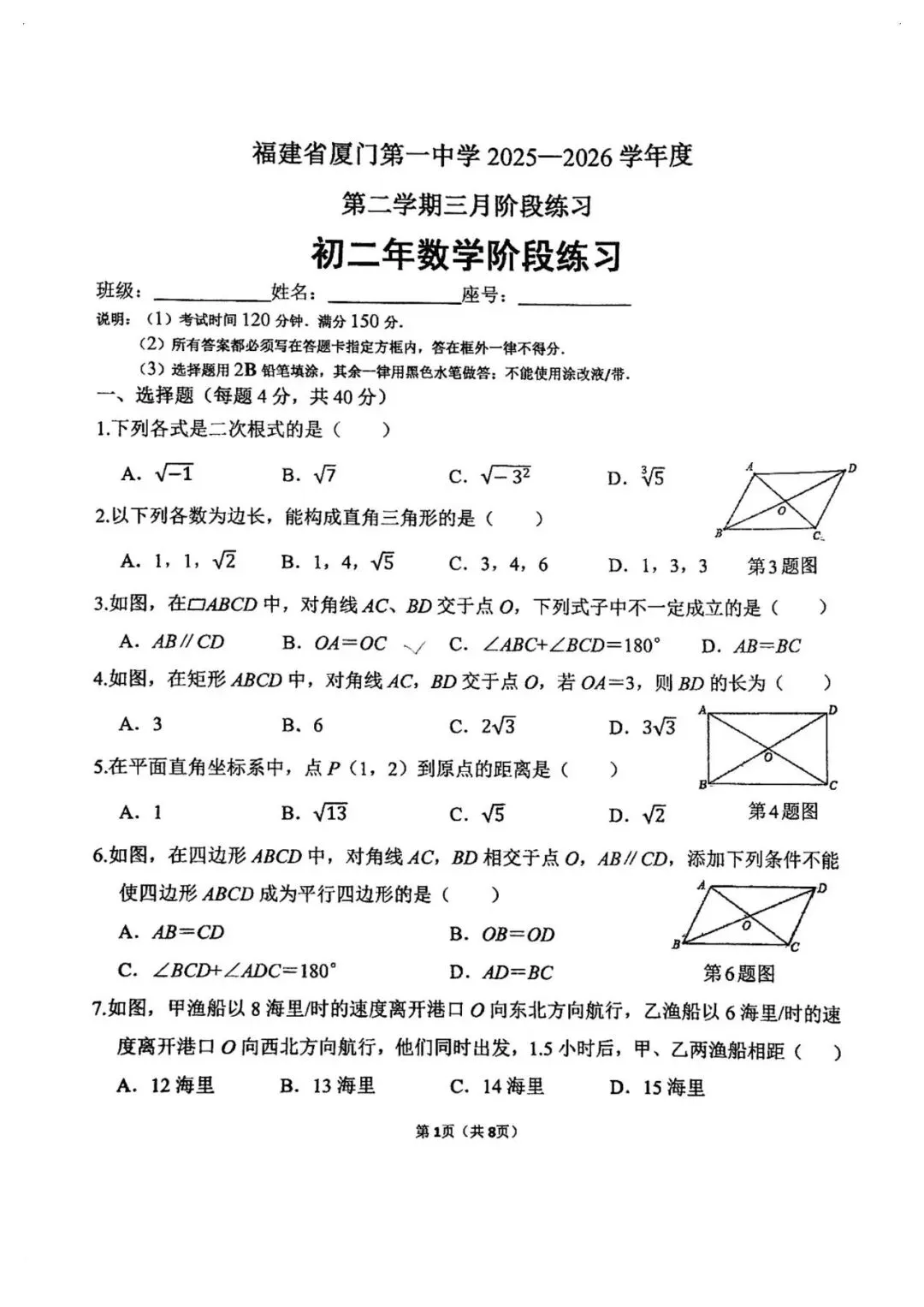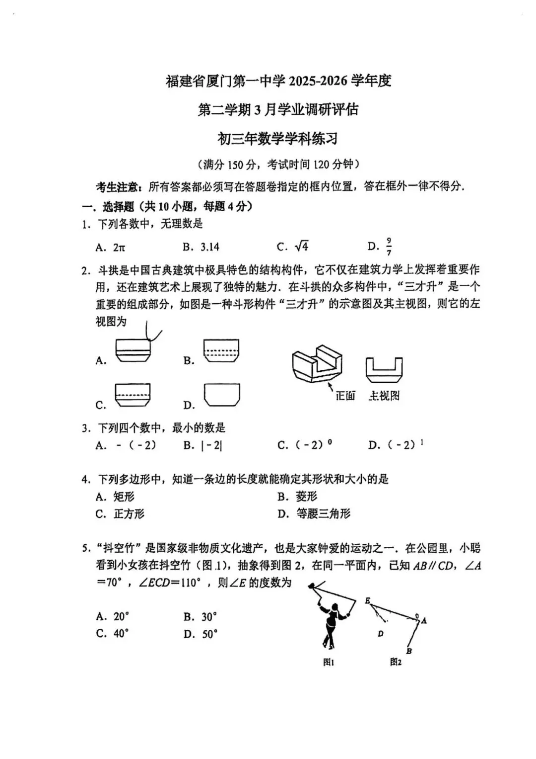 厦门一中2026年3月月考数学试卷:开年第一次月考,几家欢喜几家愁!
