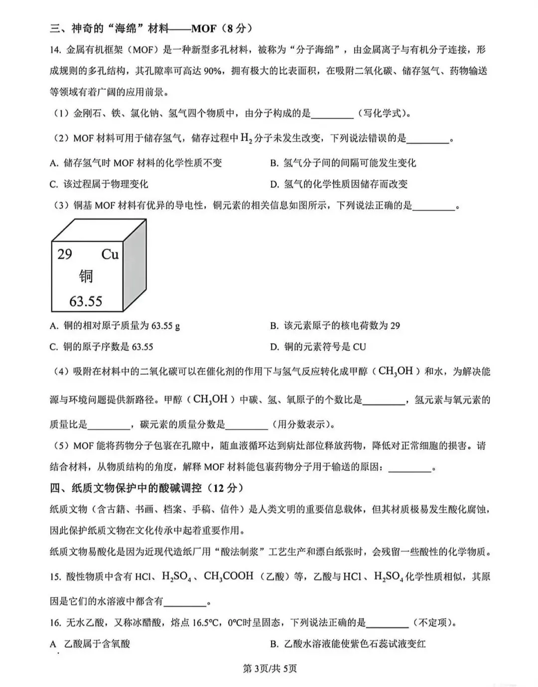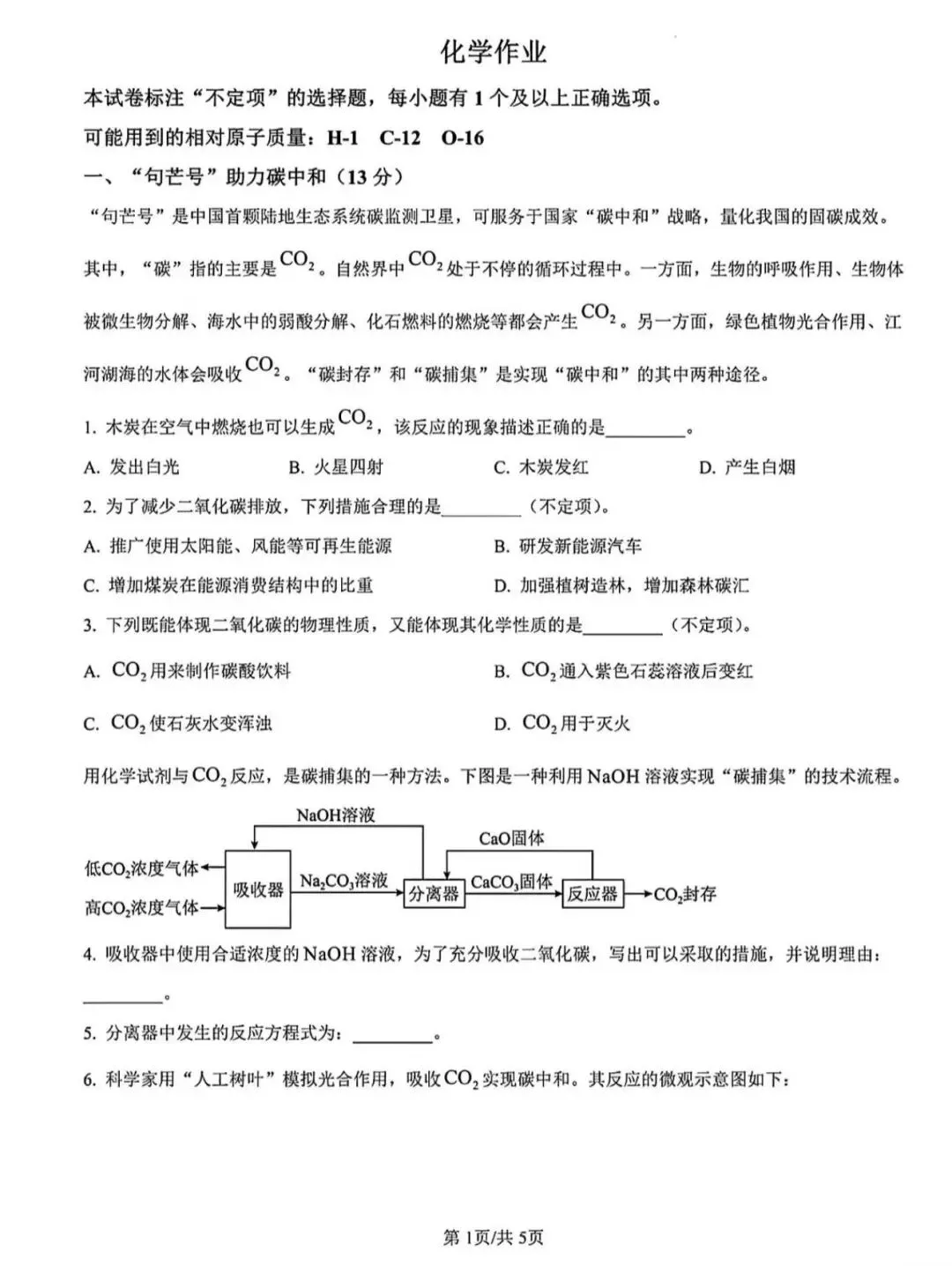 化学新题型试卷~