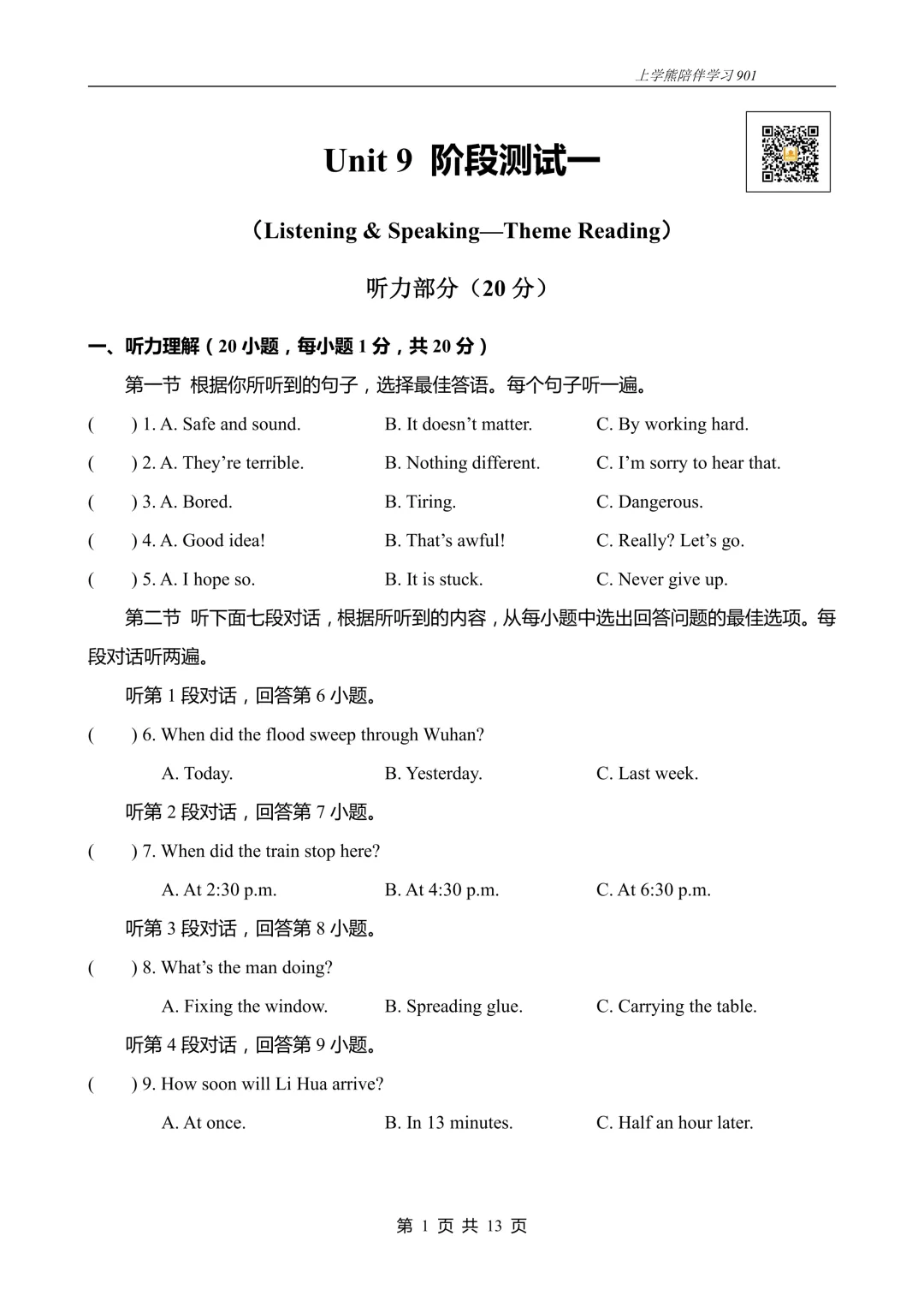 一、听力理解