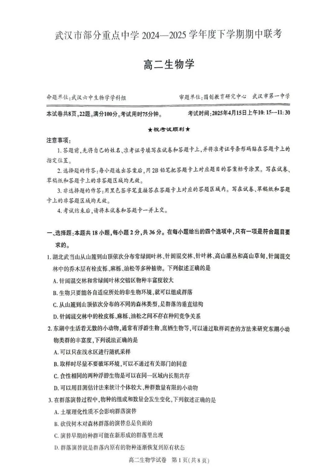 (合集)湖北省高二下学期期中联考生物试卷及答案(2024-2025学年)